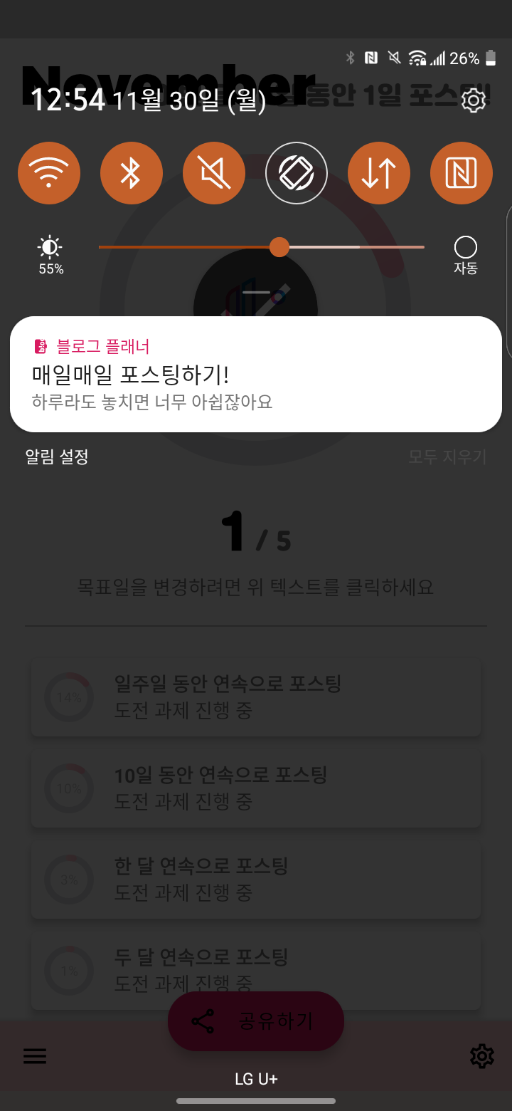 그리고 연속 포스팅을 위한 목표 설정 이 부분은 1일 N포스팅을 지원하기 전까지 거의 UI가 그대로였다 (..) 그리고 절전 예외 설정은 적절한 아이콘이 없어서 그냥 저렇게 해 두었던 것 같다. 성의 없기는.