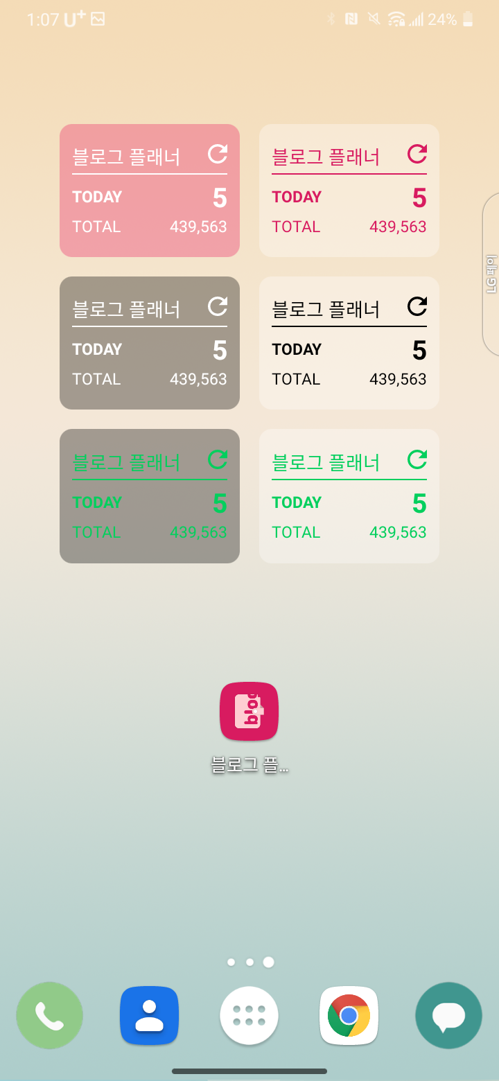 방문자수 위젯의 디자인이 확 달라지지는 않았고, 대신 드디어 전체 방문자수를 볼 수 있게 되었다. 그리고 앱 아이콘 자체는 변하지 않았는데 Google Play에서 권장하는 게 배경을 변할 수 있도록 해야 해서 그냥 저렇게 해 두었다. 참고로 저 배경색 지금도 쓰고 있다. 중간에 바뀐 적 있지만.