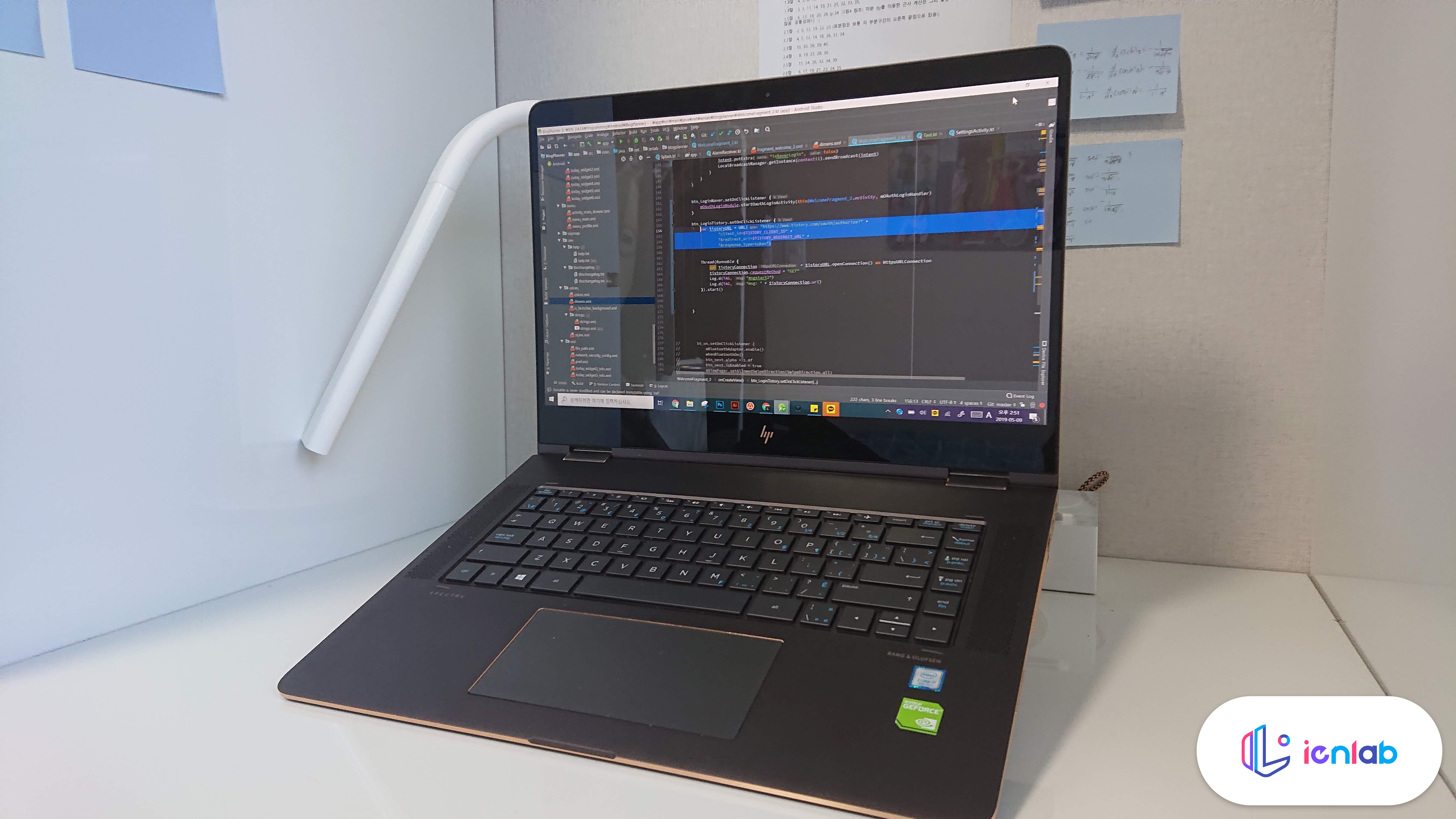노트북은 HP Spectre x360 15"이고, 부착한 채로 15도와 25도 모드를 만들어 본 상태입니다. 생각보다 훨씬 더 단단하고 고정이 잘 됩니다. 25도 모드에서 저 로고가 있는 곳을 꺾어서 고정하면 15도가 됩니다.