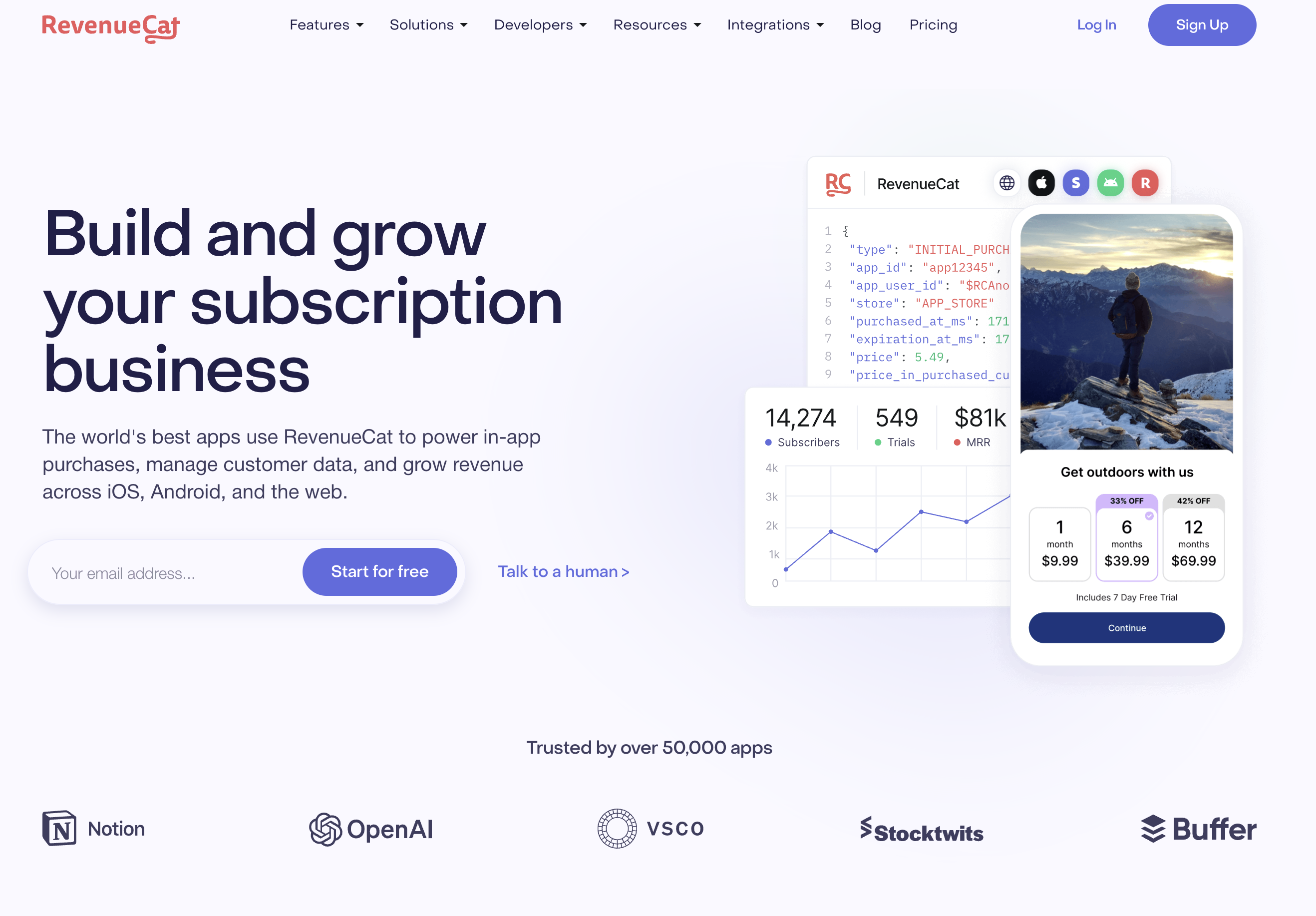 The world’s best apps use RevenueCat to power in-app purchases, manage customer data, and grow revenue across iOS, Android, and the web.