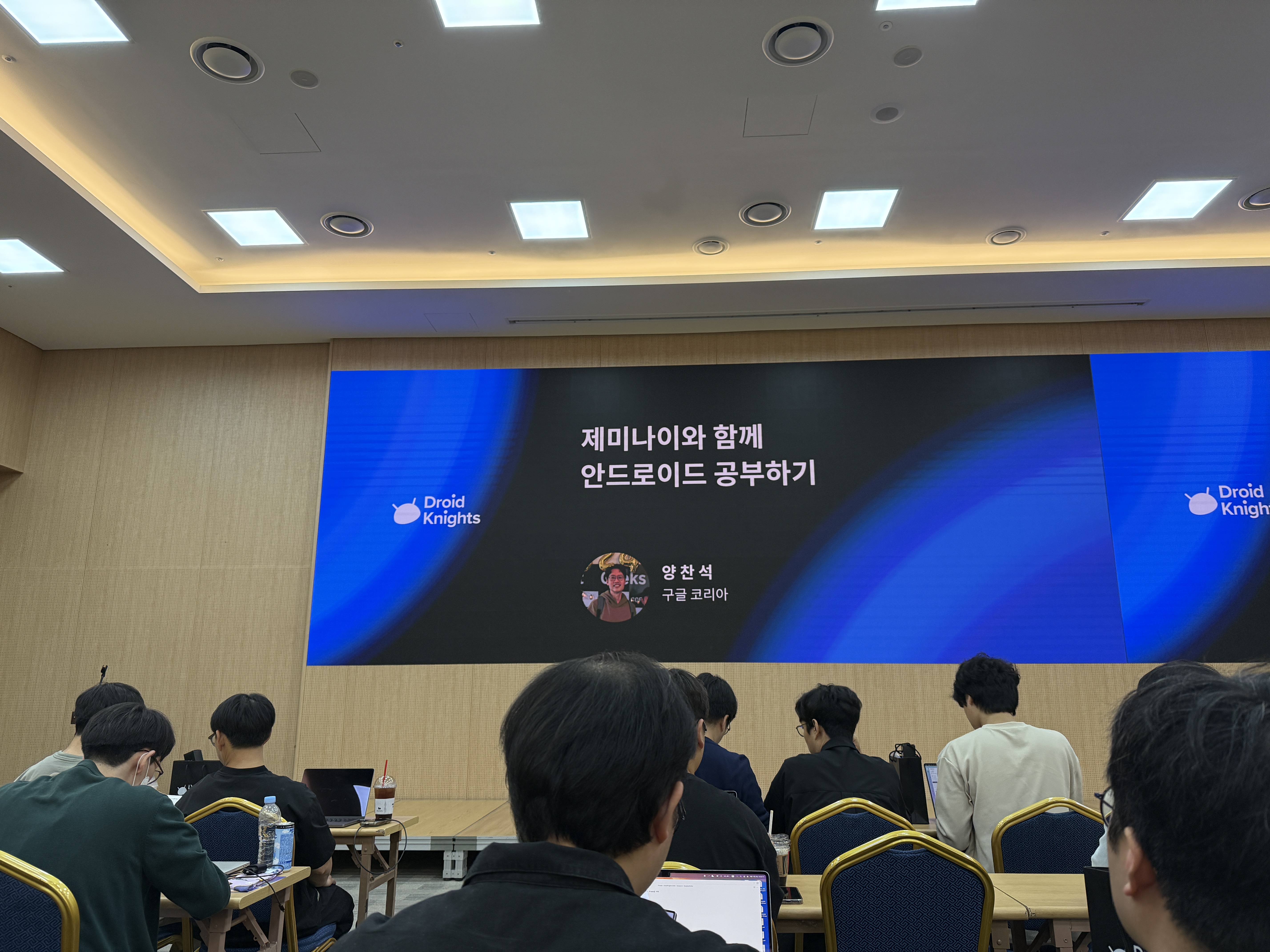 두 개의 강의실로 나누어졌고, 카카오뱅크 Compose 적용기를 통해 일반 XML 뷰에서 Compose로 마이그레이션하는 작업에 대한 프로세스, Gemini 활용, Jetpack XR (프로젝트 무한), Compose 내부 구현 원리 등을 재밌게 보았다.