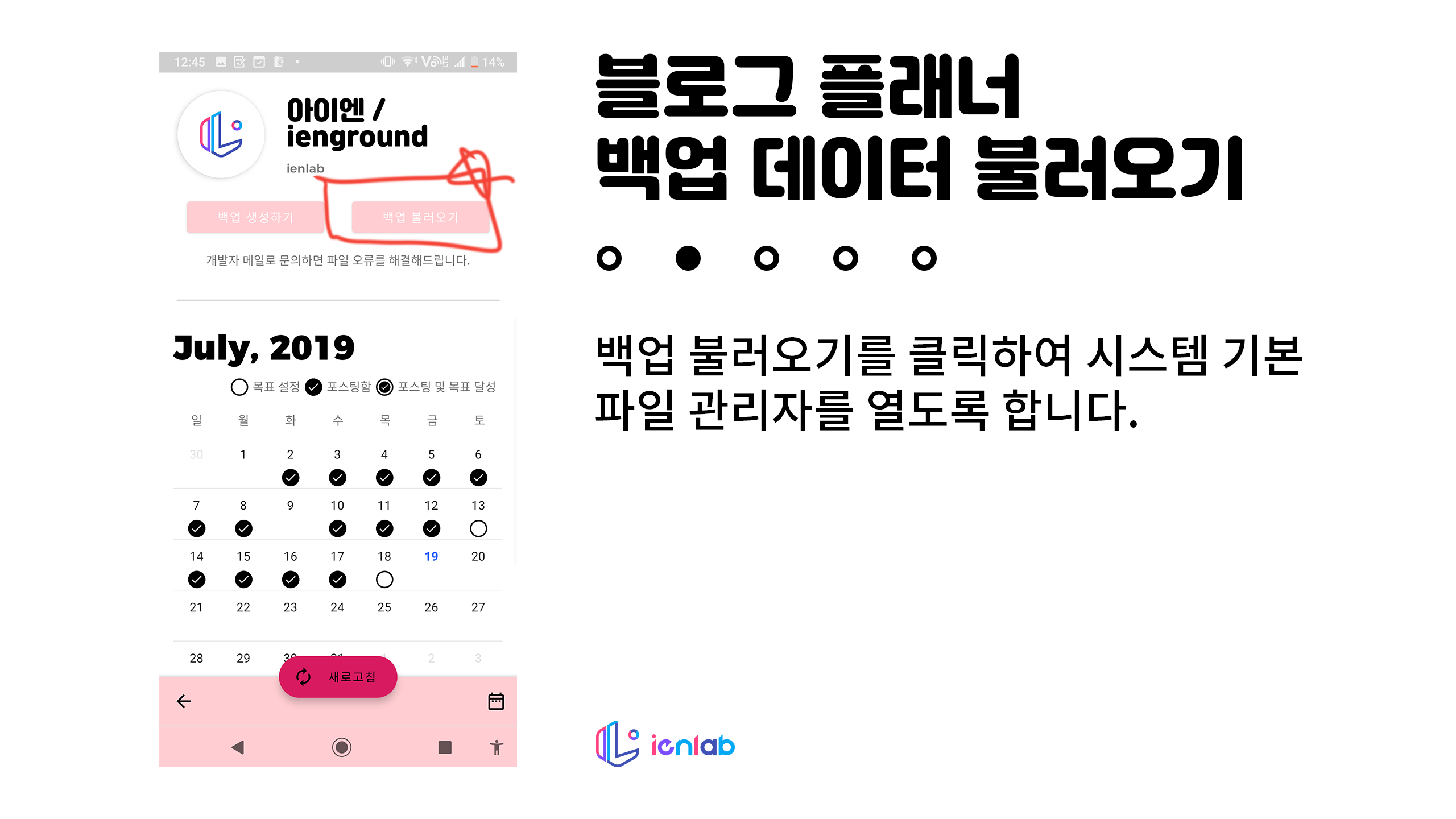 참고하셔서 백업을 불러오는 데 어려움이 줄어들었으면 좋겠습니다. 빠른 시일 내에 이런 과정 없이 데이터를 불러올 수 있도록 하겠습니다.