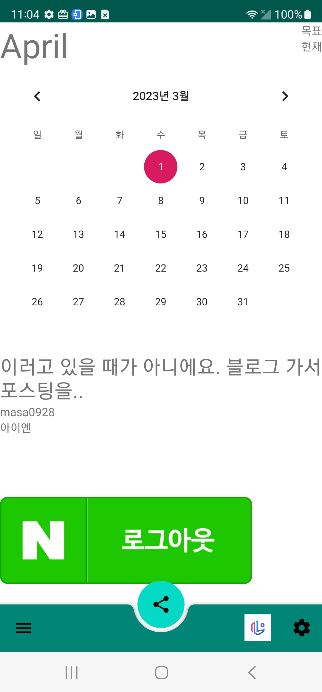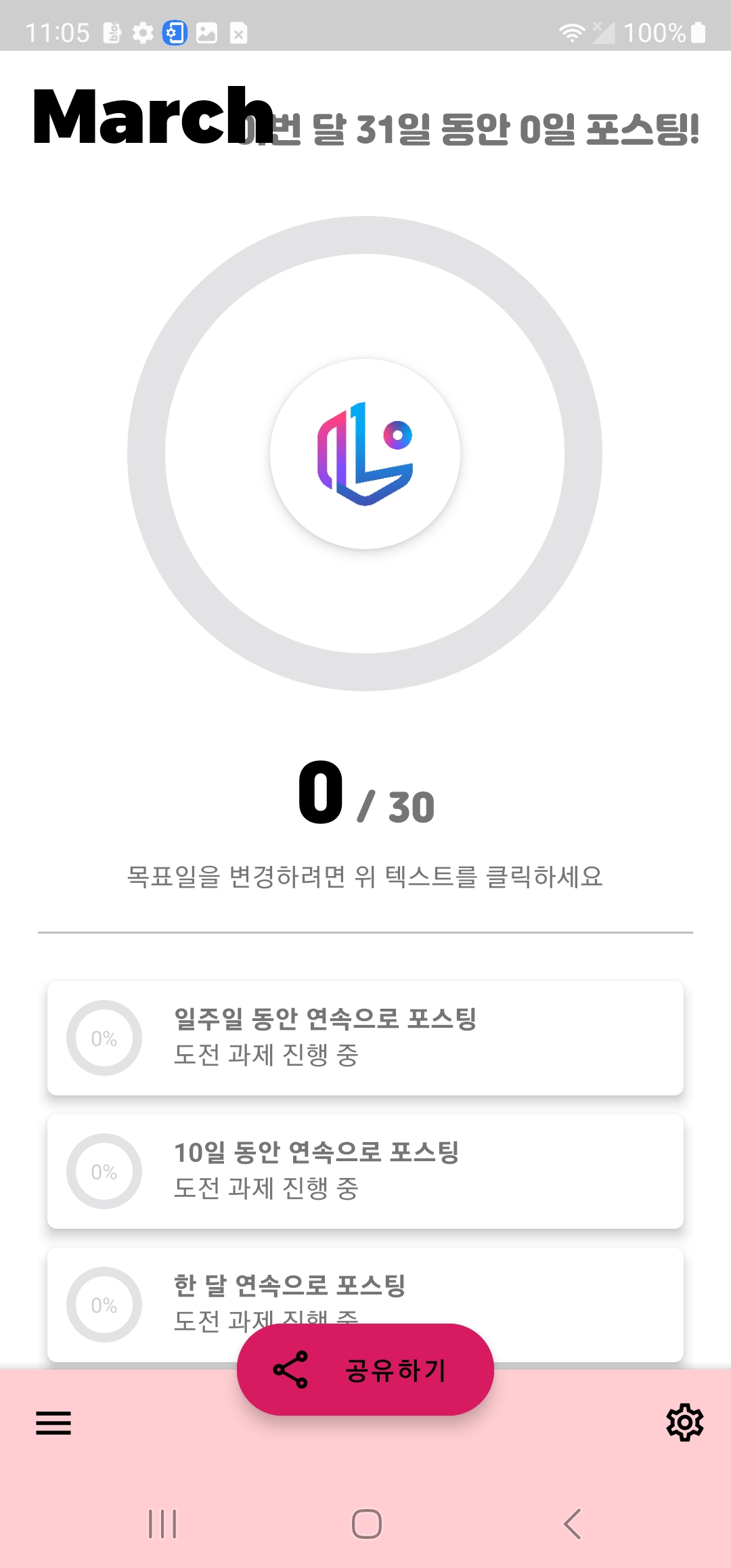 4월이 아닌데 April라 뜨는 이유는 그냥 대충 저기에 April가 있겠지.. 하고 한 거다. 그리고 개발을 4월에 시작했어서. 1.0 버전 보면 목표 따윈 저기 안 보이고 쓸데없이 일주일 동안 연속으로 포스팅 ~ 도전 과제가 있다.