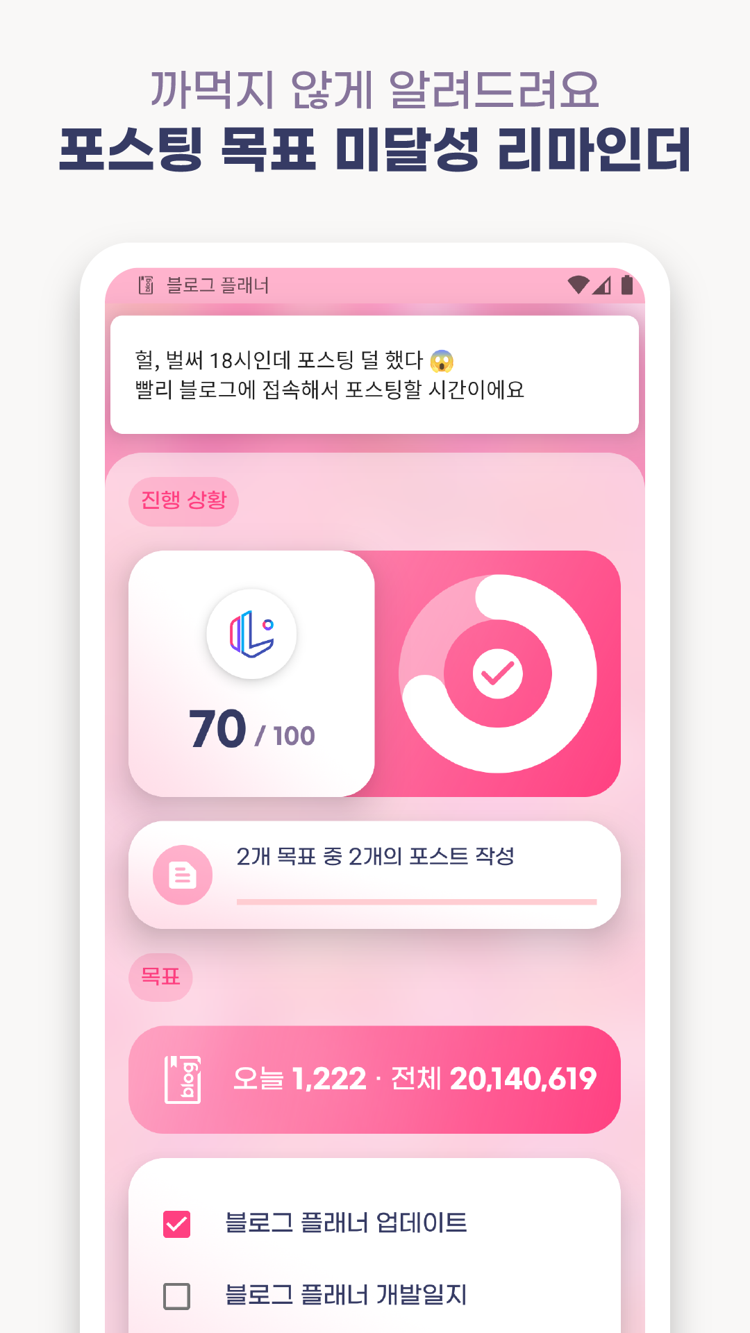 - 이제 현재 목표 진행 상황을 다른 SNS에 쉽게 공유할 수 있습니다.