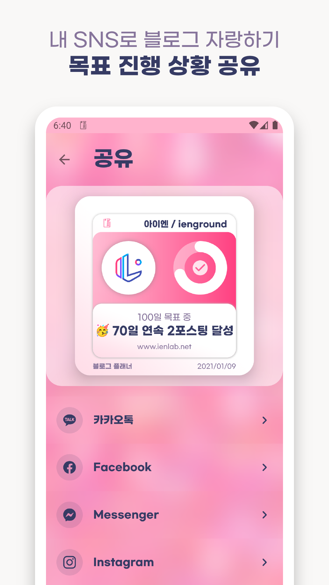 - 이제 현재 목표 진행 상황을 다른 SNS에 쉽게 공유할 수 있습니다.