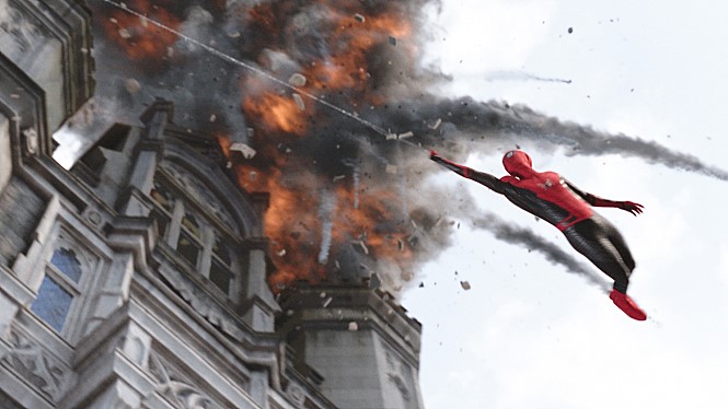 개봉 당일이나 그 전 평론가들의 말에 따르면 액션신이 전보다 화려해졌다나 뭐래나, 그 말이 정말 많이 나오더라구요. 사실 스파이더맨 - 홈커밍의 액션이 좋긴 하지만 팡팡 터지고 와- 하는 느낌이 약한 건 사실이었는데, 세계 각국 (오스트리아, 런던 등)에서 피터의 거미줄 활공 등 다양한 활용, 미스테리오와 엘리멘탈스의 싸움 등에서 확실히 시원하고 통쾌한 액션감을 느끼는 데 부족함이 없는 장면들이 많았습니다.