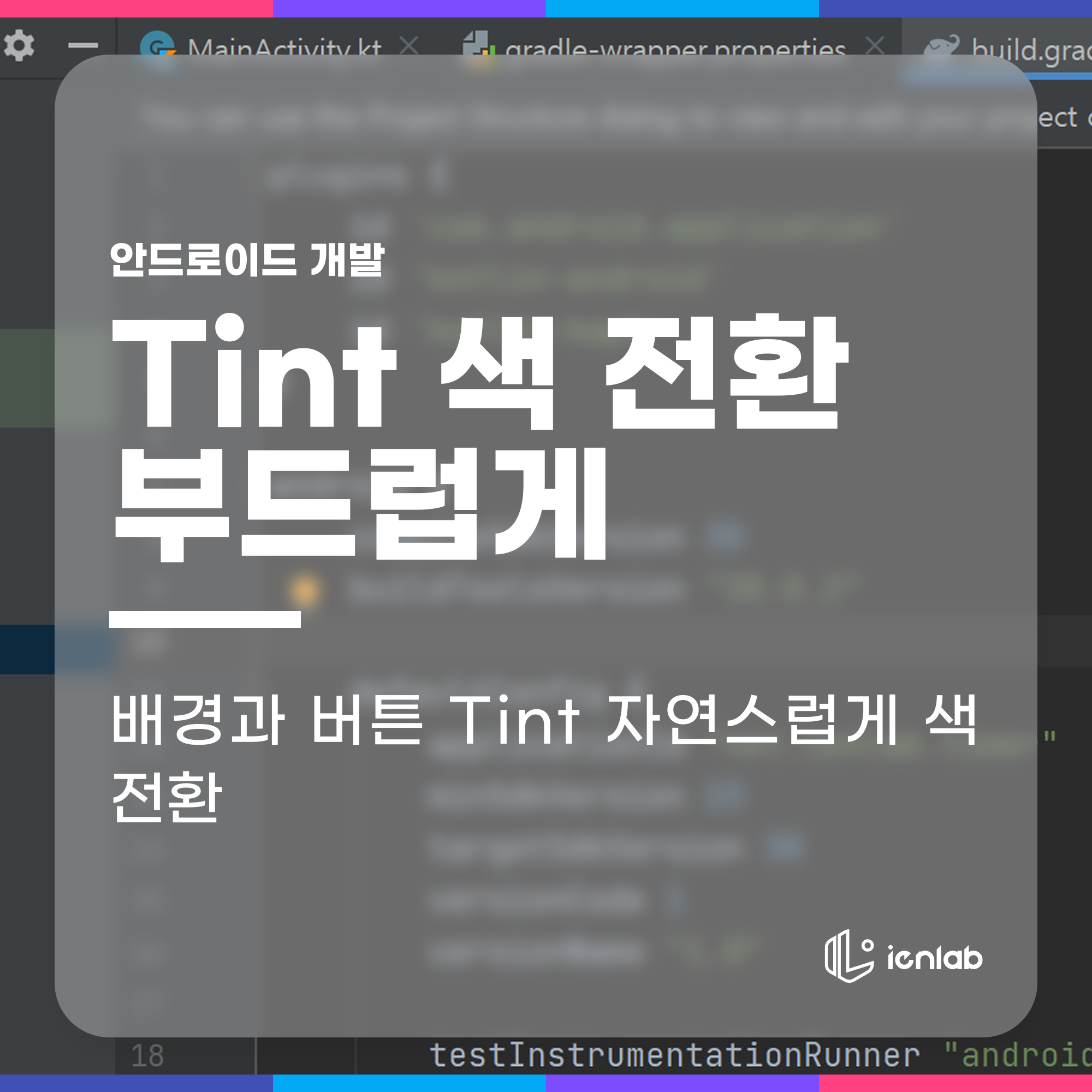 영상처럼 색 전환이 되고, 코드를 간략하게 설명하면 다음과 같습니다. 일단 이 코드는 각각 버튼의 OnClickListener 내에 있는 부분이고, 만약 선택이 안 된 상태로 전환되었다면, 그 전 색에서 disabled 색으로 변경합니다. before는 icBp의 imageTintList에서 색을 가져오고, current는 직접 색을 지정해 주었습니다. 이 애니메이션은 before에서 current로 색이 변환되고, 길이는 250밀리초 (0.25초) 입니다. 그래서 색이 바뀌는 동안 bgBp에 ColorDrawable을 만들어 drawable로 넣어주고, icBp는 imageTintList로 컬러 스테이트 리스트로 넣어줍니다.