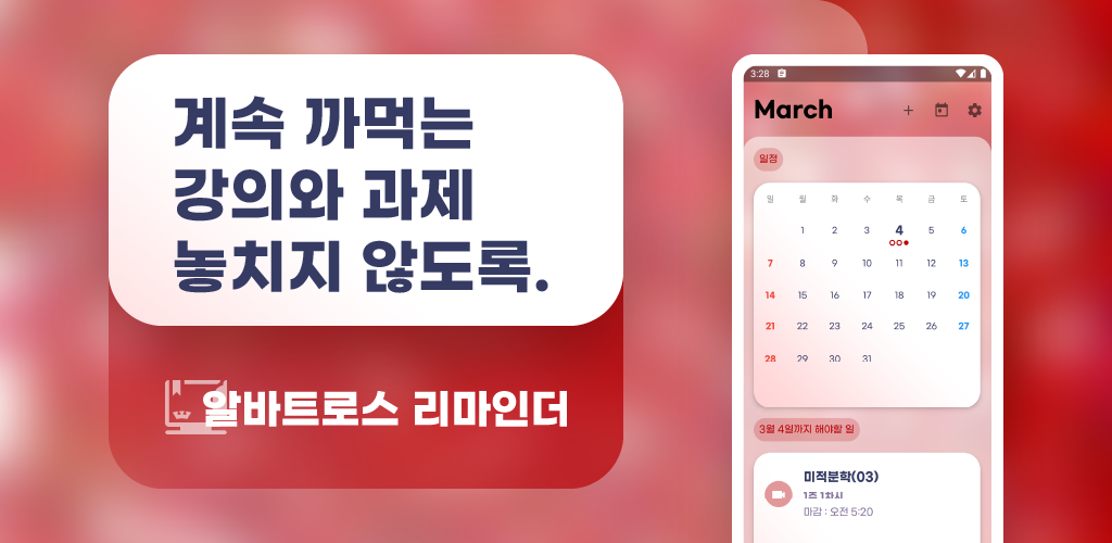 <규칙적인 블로그 생활을 위해계속 까먹는 강의와 과제 놓치지 않도록, 알바트로스 리마인더 다운로드>