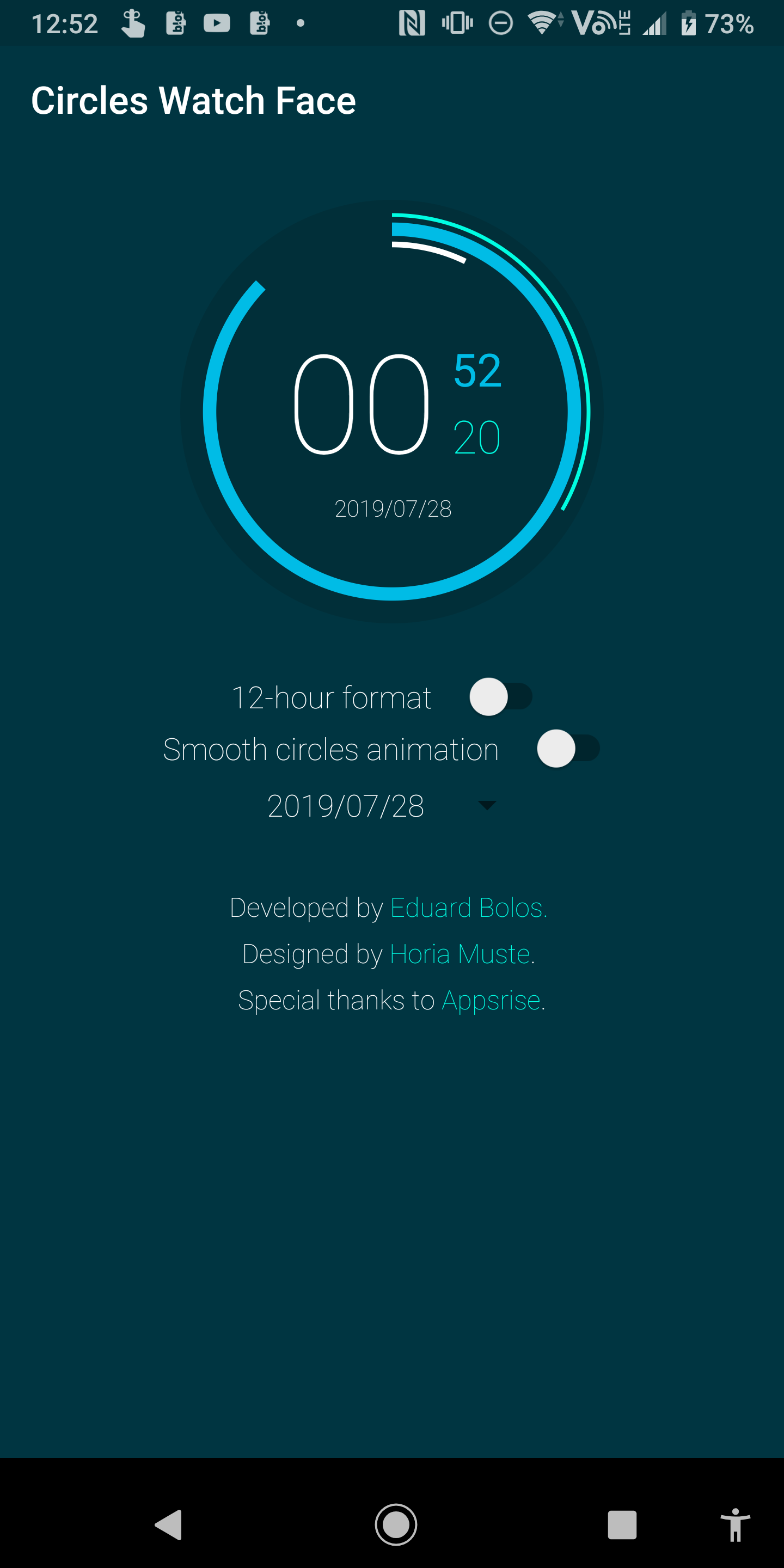 Handcrafted from the heart of Transylvania, this clean watch face with minimal design will beautify your smartwatch with its animated circles. With native support for ambient screen, the optimised dimmed mode of this watch face will guarantee a minimal bat