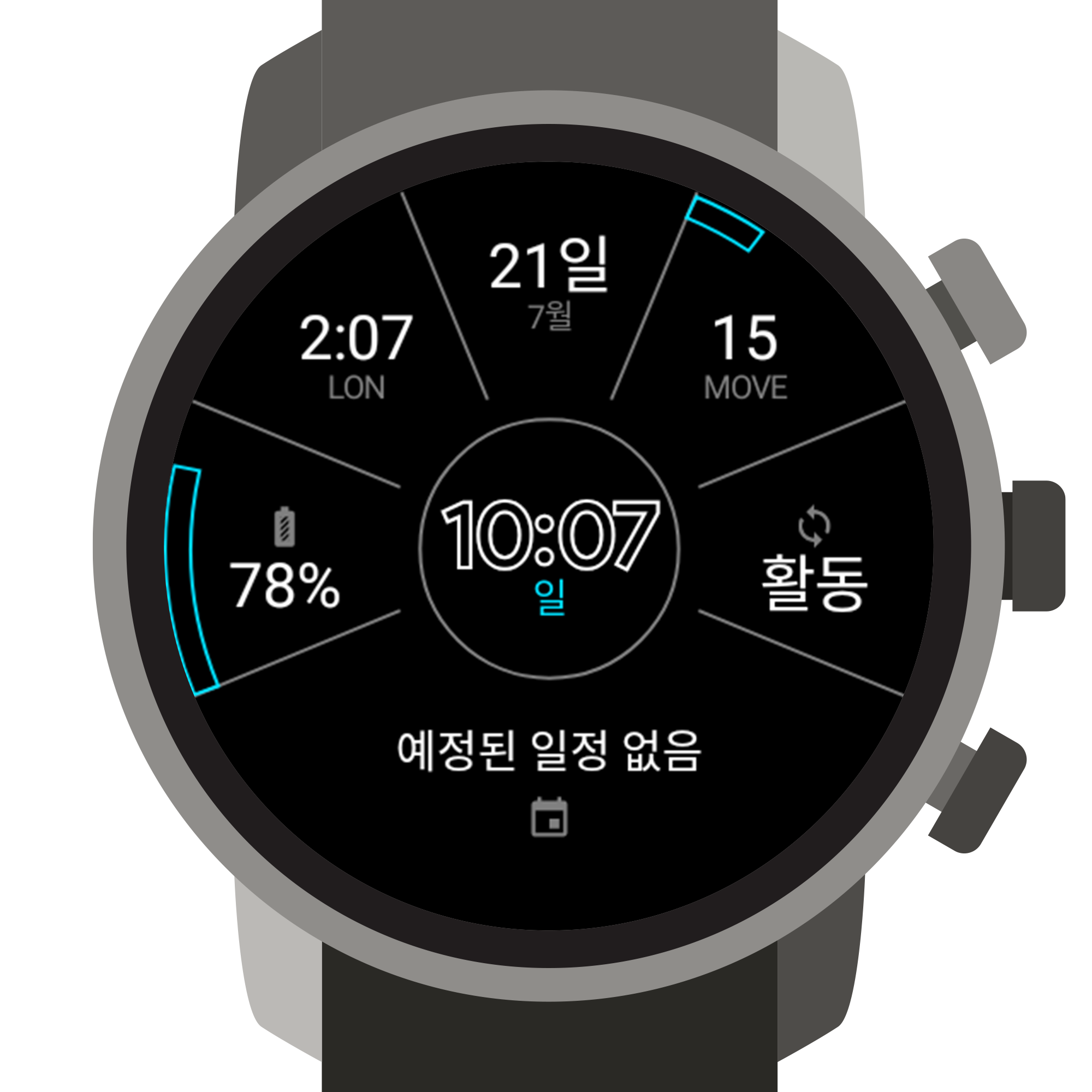이 또한 LG 워치 스포츠가 출시될 때 있던 디자인으로, LG전자와의 어떤 계약이 있었는지는 모르지만 동일한 워치페이스를 우리도 이용할 수 있게 되었습니다. 디자인도 괜찮고 정보도 많은 표시가 가능하니, 두 마리 토끼를 다 잡고 싶은 사용자에게 추천합니다.