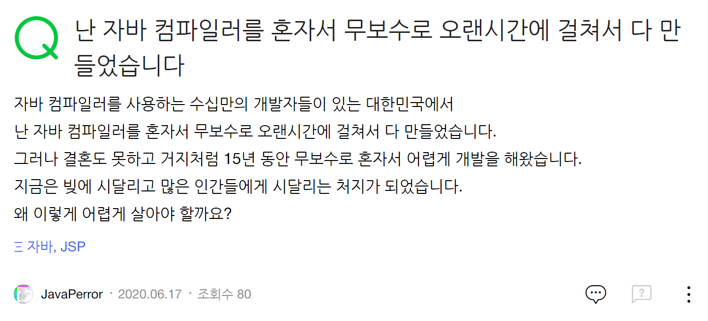 난 자바 컴파일러를 혼자서 무보수로 다 만들었는데 왜 거지처럼 살아야 할까요?