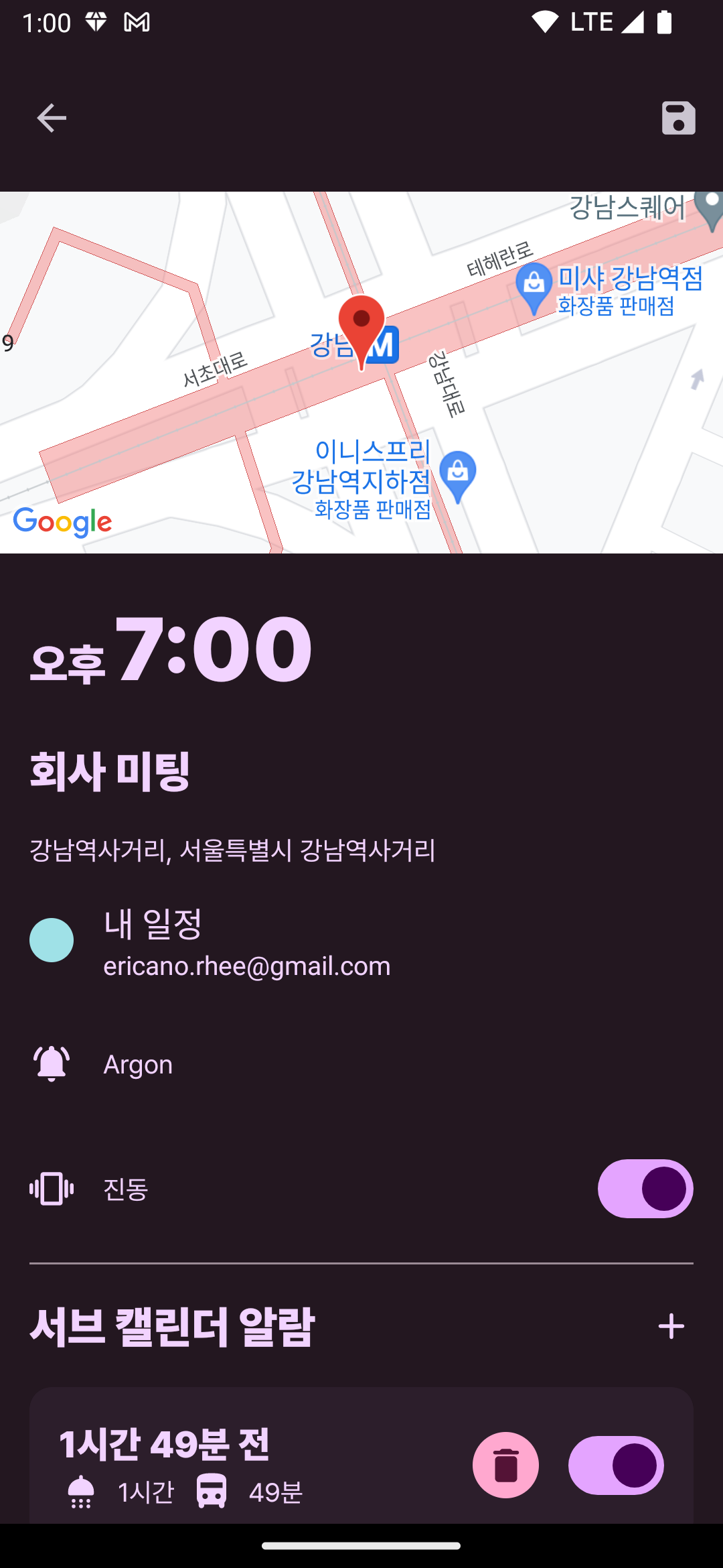 #2 서브 캘린더 알람을 디테일하게 보여주고, 이 이벤트가 어떤 캘린더에서 유래됐는지 컬러로 보여주고 있다.