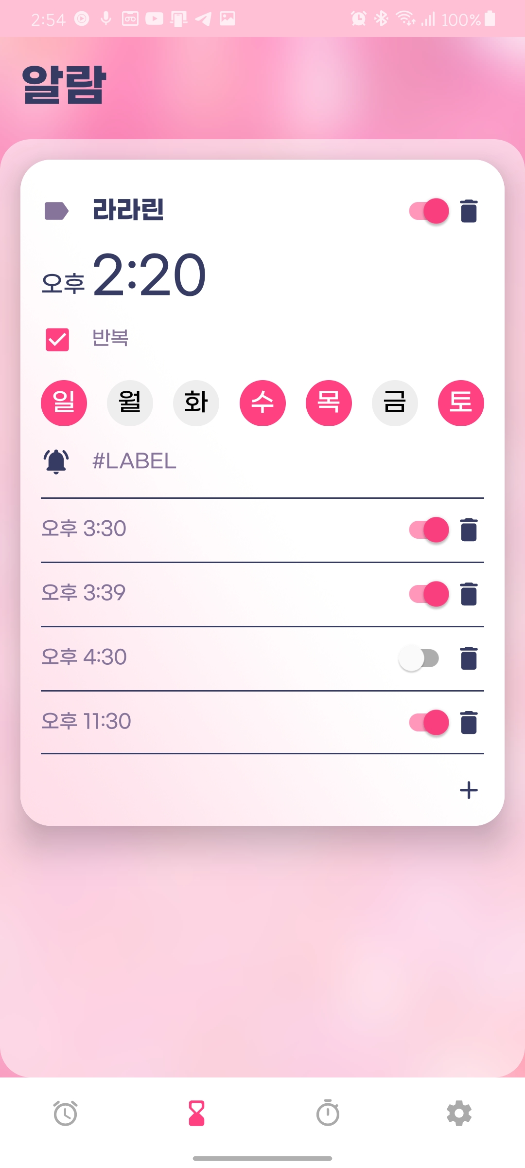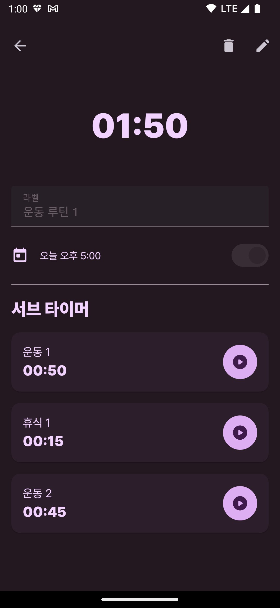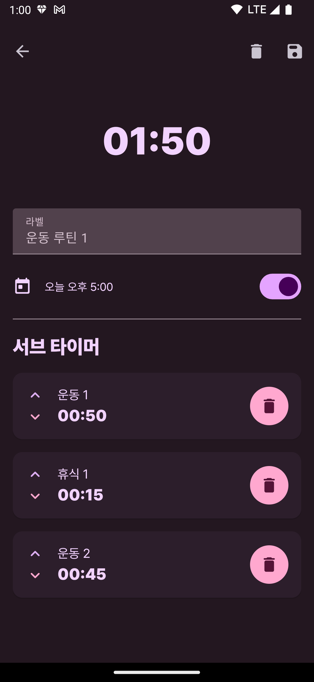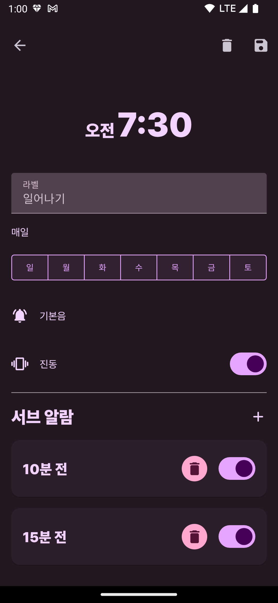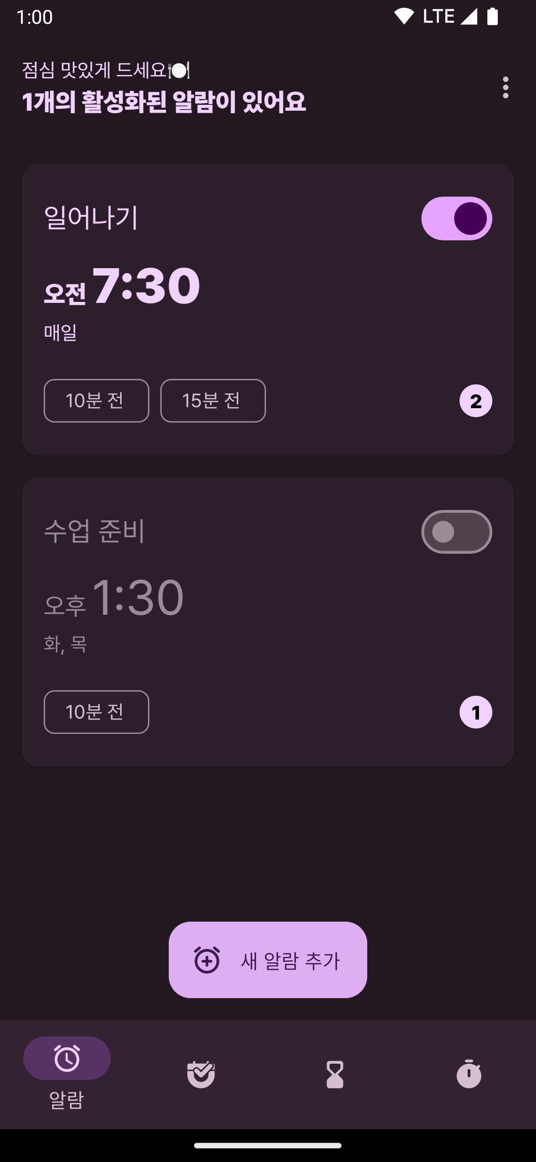 #1 알람에는 서브 알람과 타이머 루틴 개념으로 앱을 만들고 있었다. UI 디자인이 많이 발전했다.