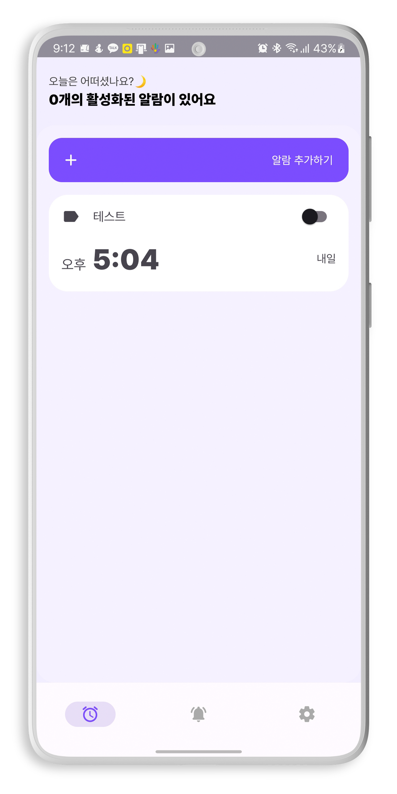 #2 캘람 2021 버전이다. 캘람 2023에도 처음에는 새 알람 추가가 저 위치에 있었는데..