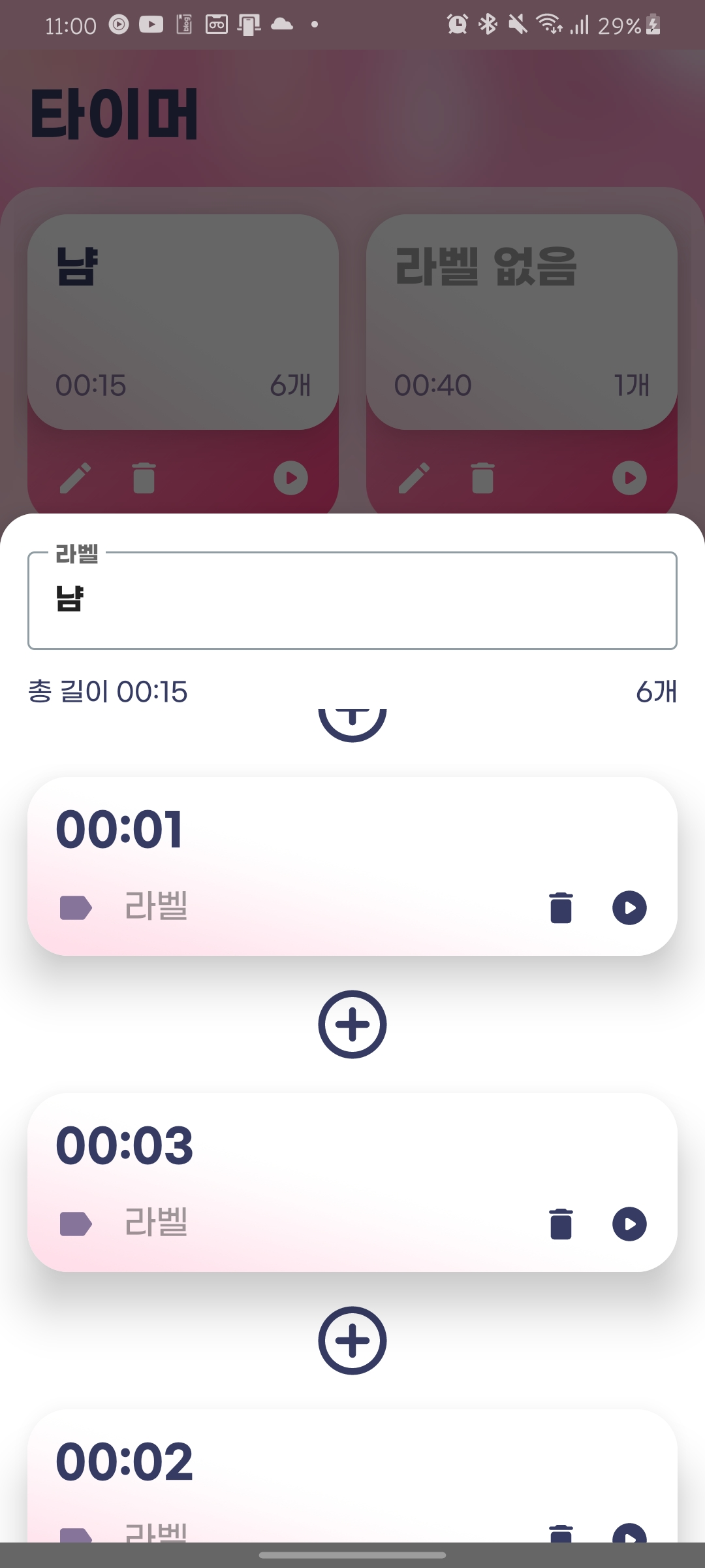 사실상 'Timer'라는 앱은 타이머가 핵심이었다. '타이머 루틴'을 만들 수 있다는 게 이 앱의 포인트였는데 캘람에서 그 포인트를 그대로 받아왔다. 때문에 UI에서도 비슷한 점이 많다.
