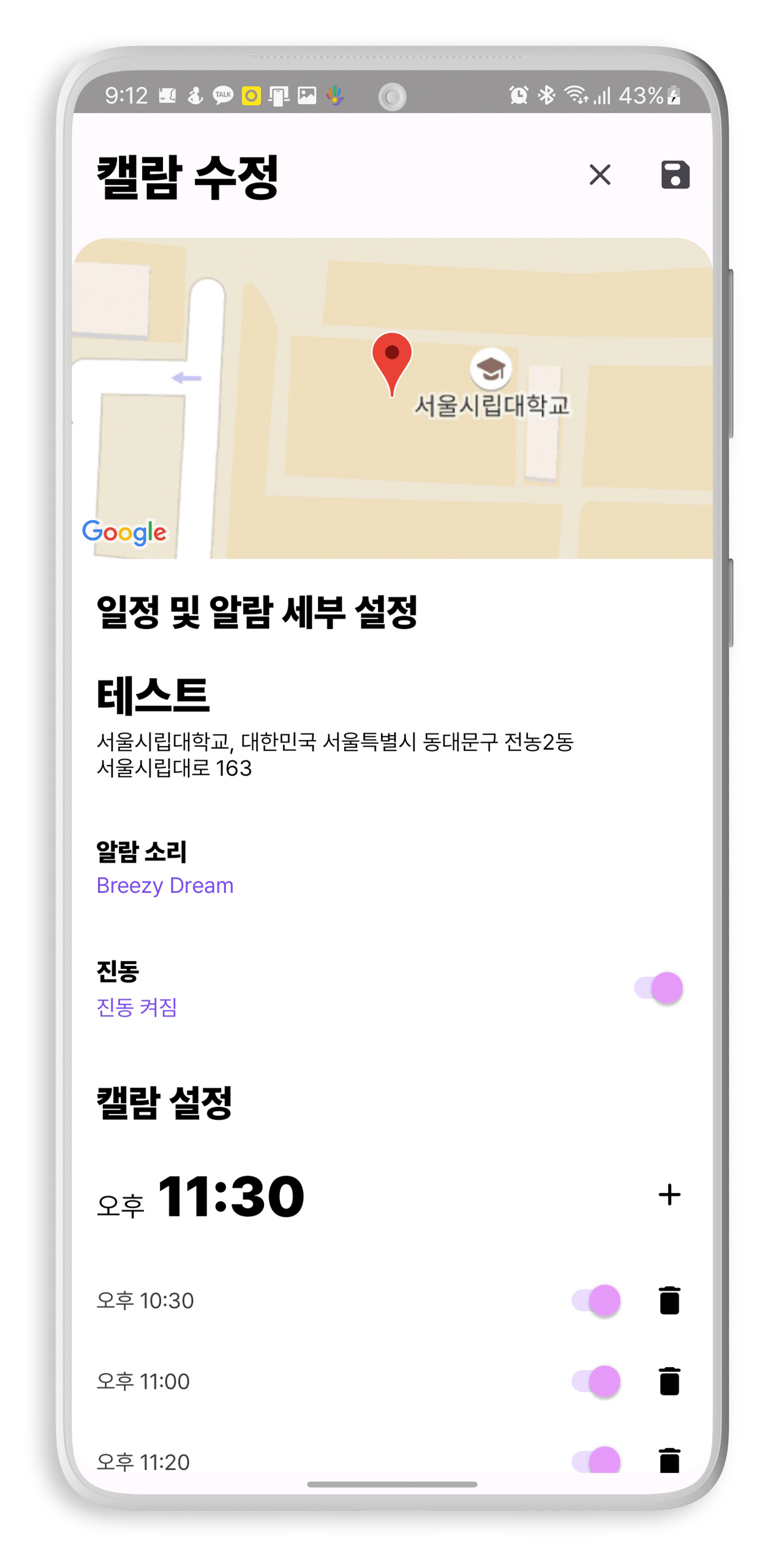 #2 캘람 2021 버전이다. 캘람 2023에도 처음에는 새 알람 추가가 저 위치에 있었는데..