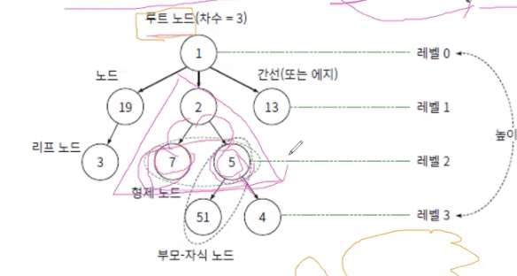 - 노드와 간선으로 이루어진 계층적 자료 구조 (부모 자식 관계가 있음)