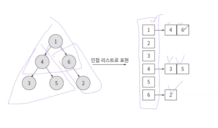 - 트리 노드 갯수와 인접 리스트 아이템 갯수가 거의 같음.