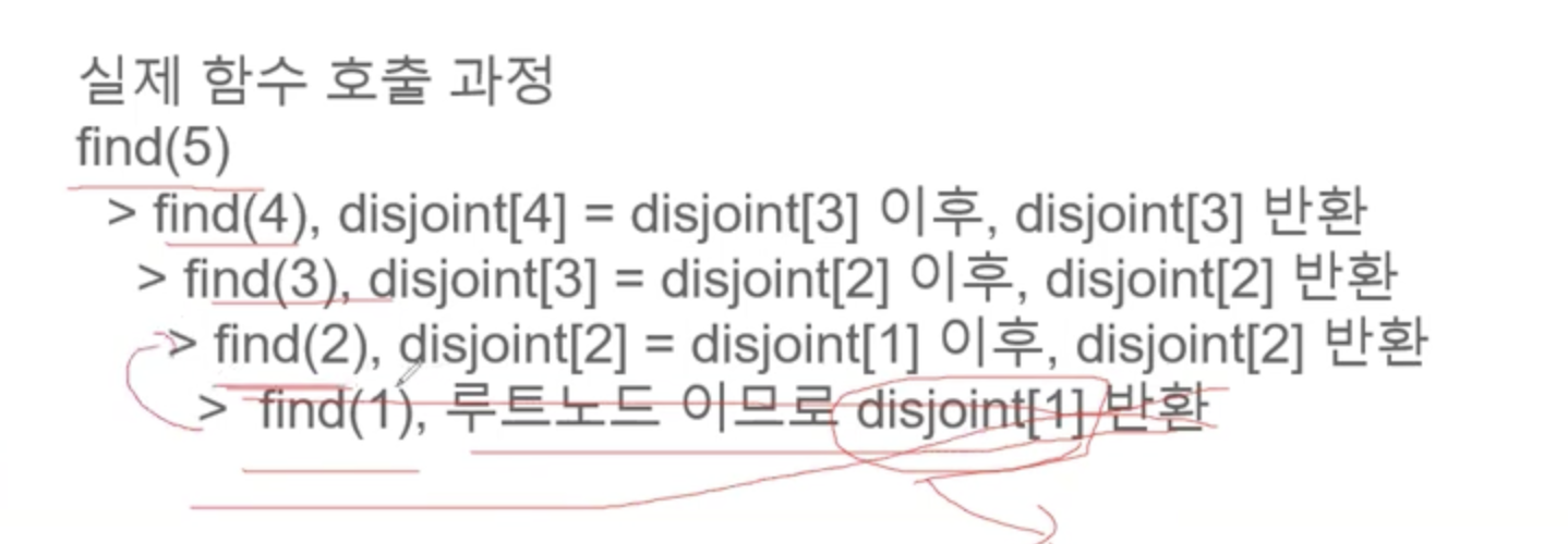 - find연산을 하는 노드가 루트 노드가 아니라면, 자신의 부모 노드를 find로 설정