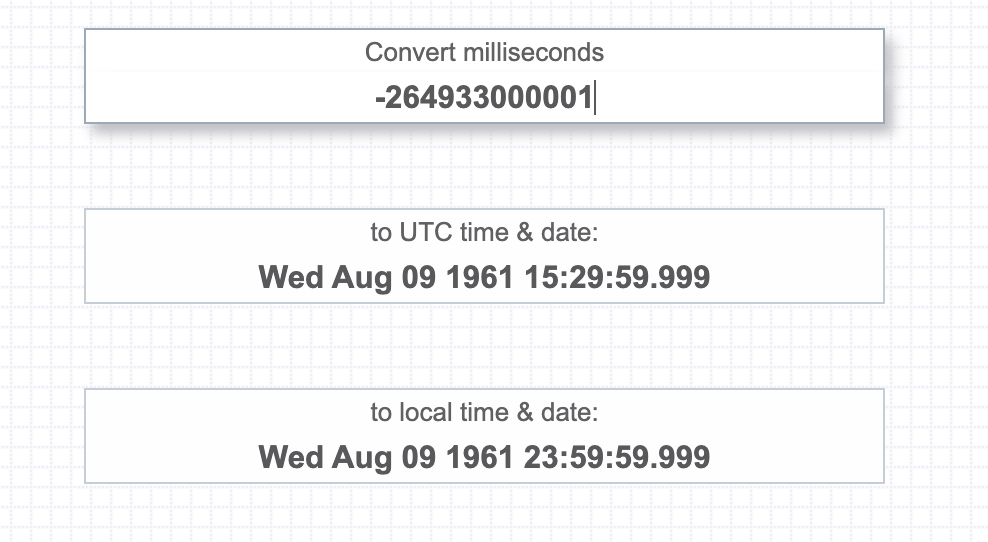 어? 그래서 계산식에는 실수가 없는데, 진짜 원래 이런 건가? 하고 현재 시간을 밀리초로 바꿔주는 사이트에서 직접 대입해서 해 보았다.