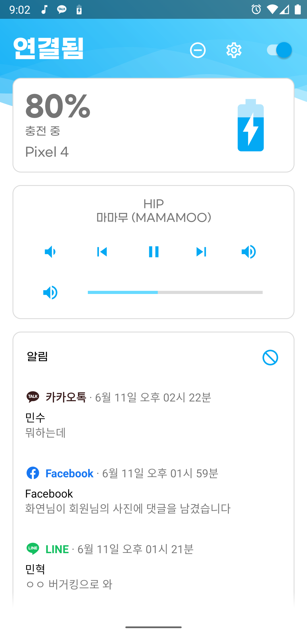 개인적으로 개발용 태블릿 기기가 없어서 생각을 안 하고 있었는데. 하여튼 그래서 AVD 머신으로 했더니 오, 나쁘지 않은 것 같다. 원래 세로 형태는 배터리, 미디어, 알림, 도움말 순서인데 알림의 경우 길어질 가능성이 크니까 가로 모드에서는 2열로 나누어서 배터리, 미디어, 도움말과 같이 높이가 불변할 그룹은 왼쪽에, 알림은 세로로 길기 때문에 오른쪽에 고정되어 있다.