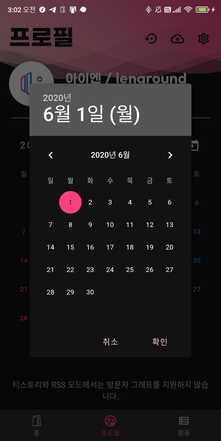 그리고 프로필 탭에서 달력 위의 '2020년 7월' 글자를 누르면 빨리 이동하도록 했다.