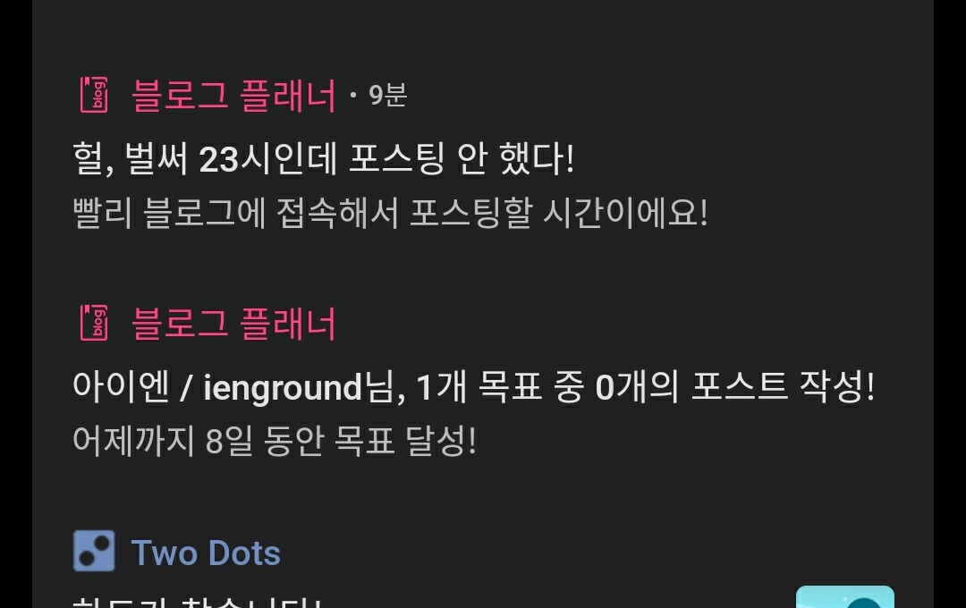 이제 작성/미작성이 아니라 목표 달성/미달성으로 포스팅 체크 된다. 메시지만 수정하면 될 것 같다.
