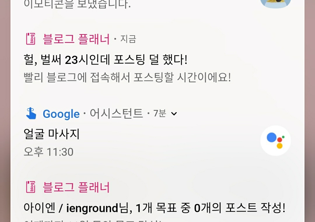 대참사. 포스트 수대로 데코레이터 추가했는데 하나도 안 보인다. 그리고 시간 설정이 잘못되었는지 포스팅 시간이 지멋대로다. 이전 방식대로 알림 띄울 때 시간을 제한할 필요가 확실히 있다. AlarmManager 극혐