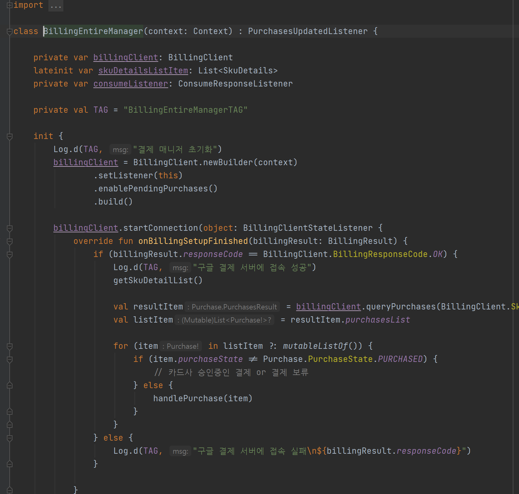 기능 구현은 다 끝났고 몇달 전부터 계속 이상해진 anjlab iab 라이브러리를 버리고 정석적인 루트로 가기로 했다. 근데 얘도 조금 이상한 것 같은데 일단 처음이니까 시도해봐야겠다. 이번에 제대로 되면 11월 안에 출시 가능했으면 좋겠다.