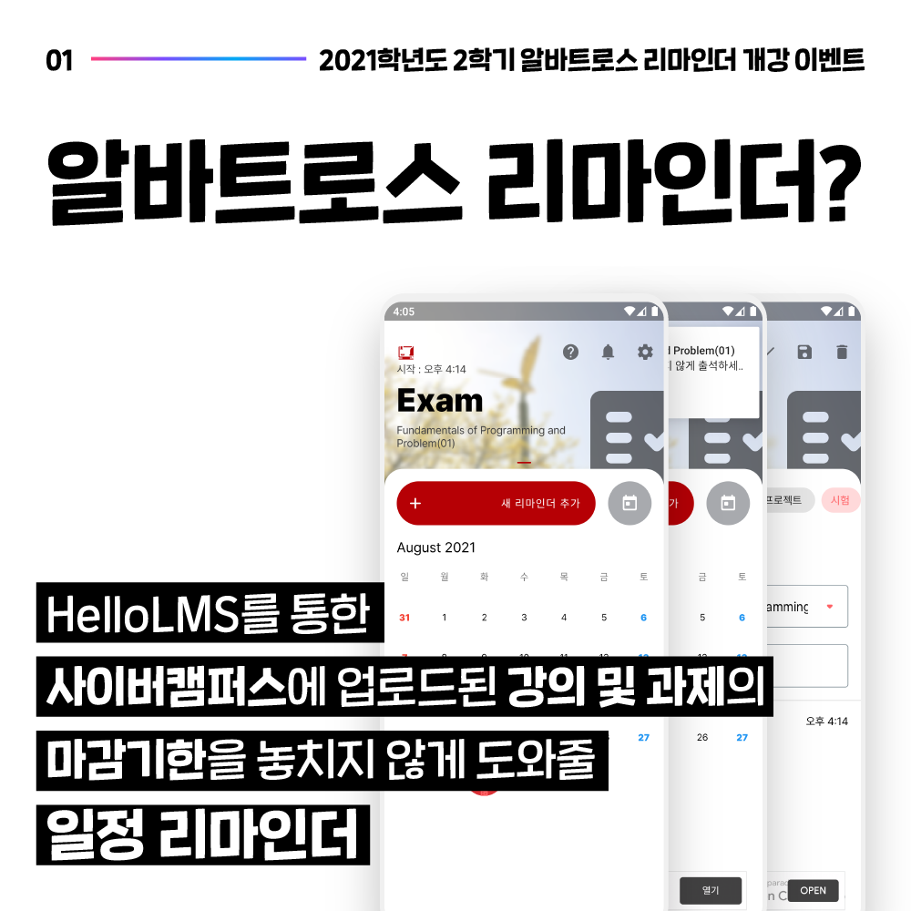 | 알바트로스 리마인더 2.0.0 업데이트 (0) | 2021.08.31 |