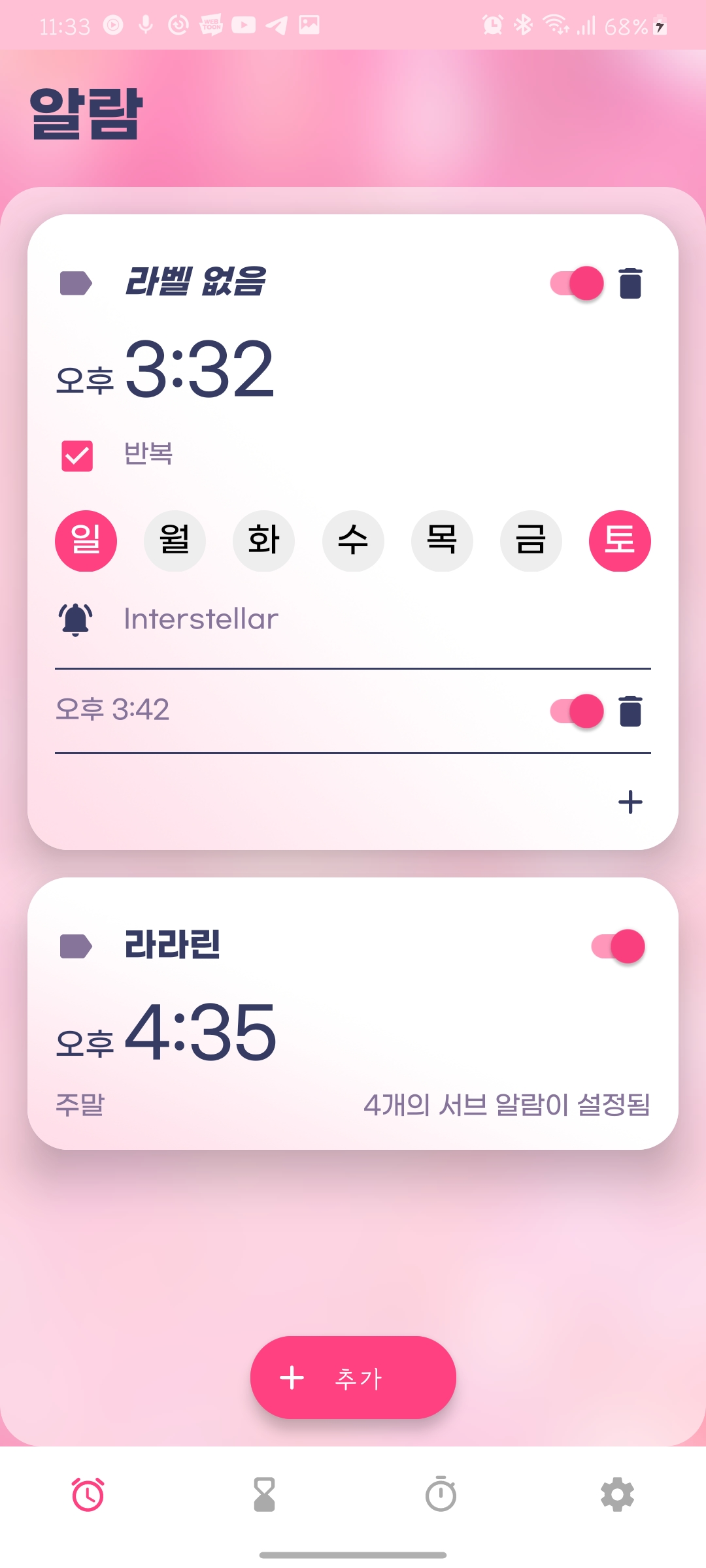 오늘은 알람 링톤을 가져와서 리스트에 뿌리고, 이를 Alarm.sound에 저장한 후 이 데이터를 바탕으로 다시 이름을 불러와 텍스트로 지정해 주는 작업을 했다. 이제 진짜 알람을 설정하는 코드를 작성할 예정이다.