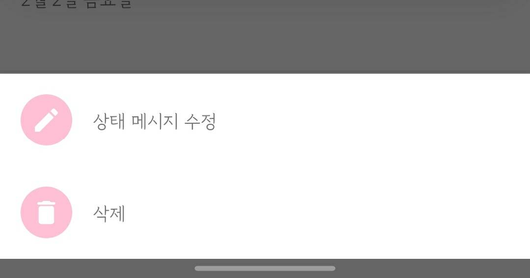 오늘은 현생이 바빠 개발을 거의 하지 못했다. 상태 메시지를 수정하는 BottomSheetDialog 부분을 했고 오늘 밤에는 다이얼로그 하나 더 띄워서 수정할 수 있도록 해야겠다. or Activity