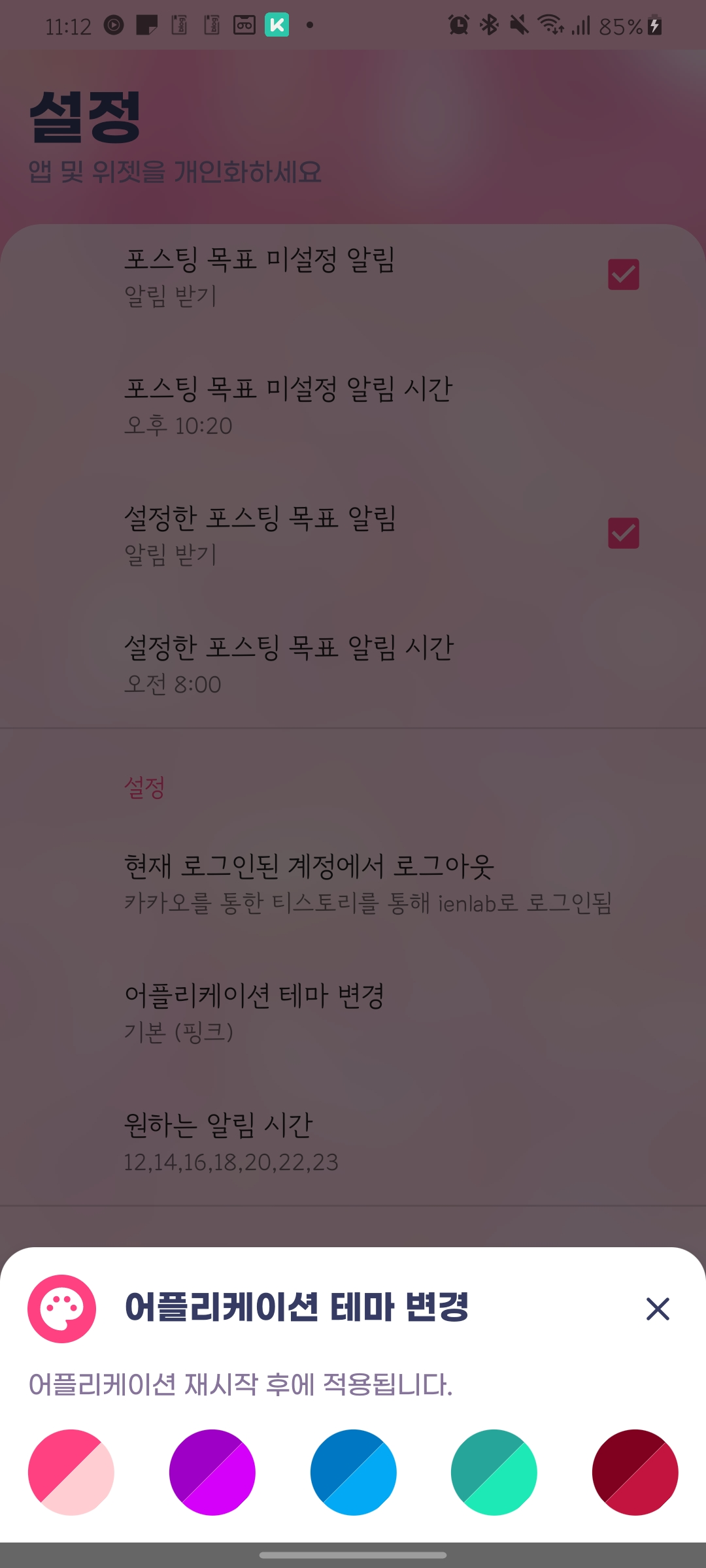 다이얼로그 디자인 변경했다. 테마랑 알림 시간, 그리고 하루 목표 포스팅 갯수까지! 그런데 포스팅 갯수는 원래는 글자 입력이였는데 -, +로 조절하고 길게 누르면 빠르게 추가도 가능하게 했다.