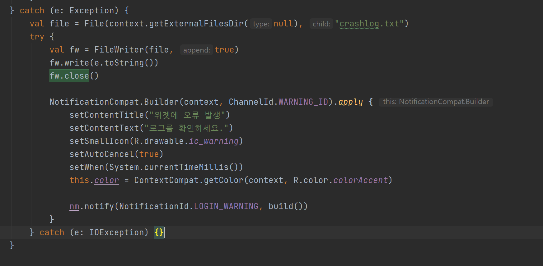 별 건 아니고 위젯에 종종 오류가 터지는 것 같은데 항상 모니터를 할 수 없어 직접 파일에 어펜드되도록 로그 파일을 기록하게 추가했다. 언제 터지는지도 봐야 해서 알림도 띄우기.