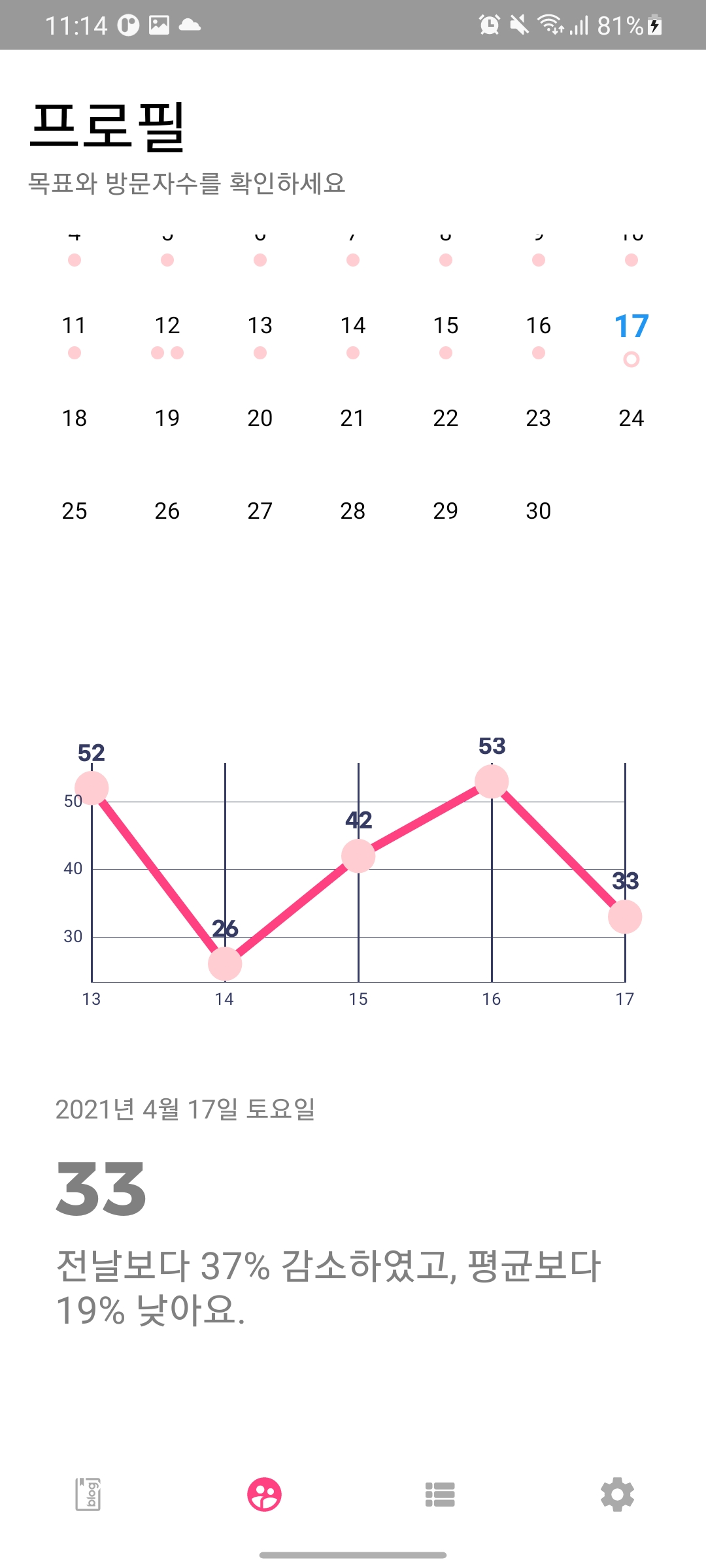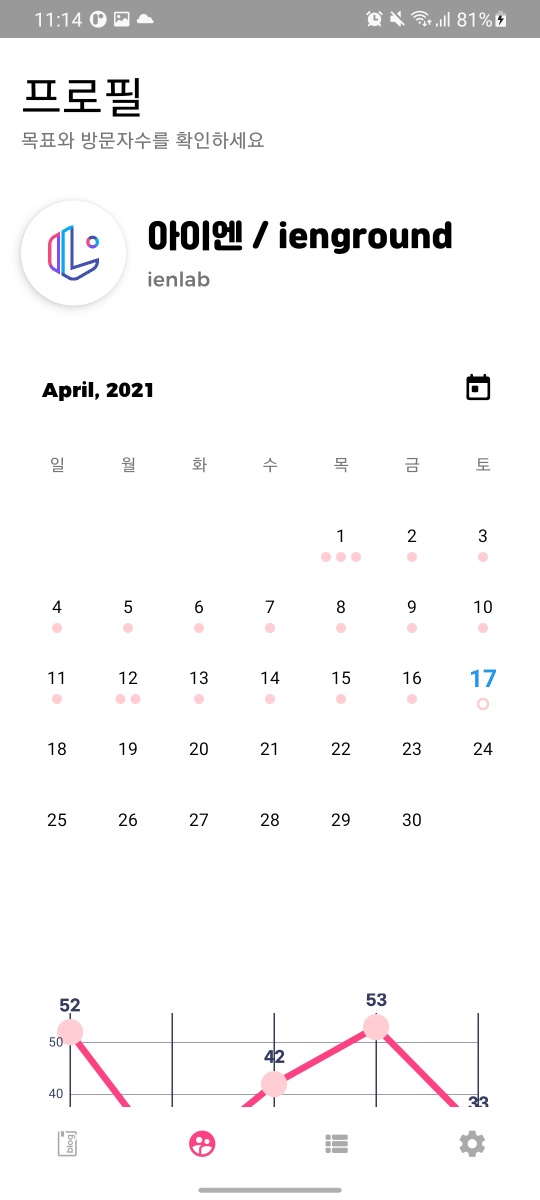 1.x 테마가 많이 완성되어 간다. 특히 첫번째 페이지는 배치를 제외하면 거의 같다. 폰트도 불러왔고 색도 얼추 맞다. 그리고 프로필은 약간 2.0 + 1.0 느낌이긴 하지만 웨이브가 없으니까 1.0이 맞다. 오늘 날짜가 파란색으로 설정되어 있는 건 원래 그런 것 같았다 (예전에 쓰던 달력 라이브러리가 원래 그랬음 - 지금은 바뀜). 원래 April, 2021 글자가 엄청 컸는데 테마에서 건들기에는 좀 무리가 있다.