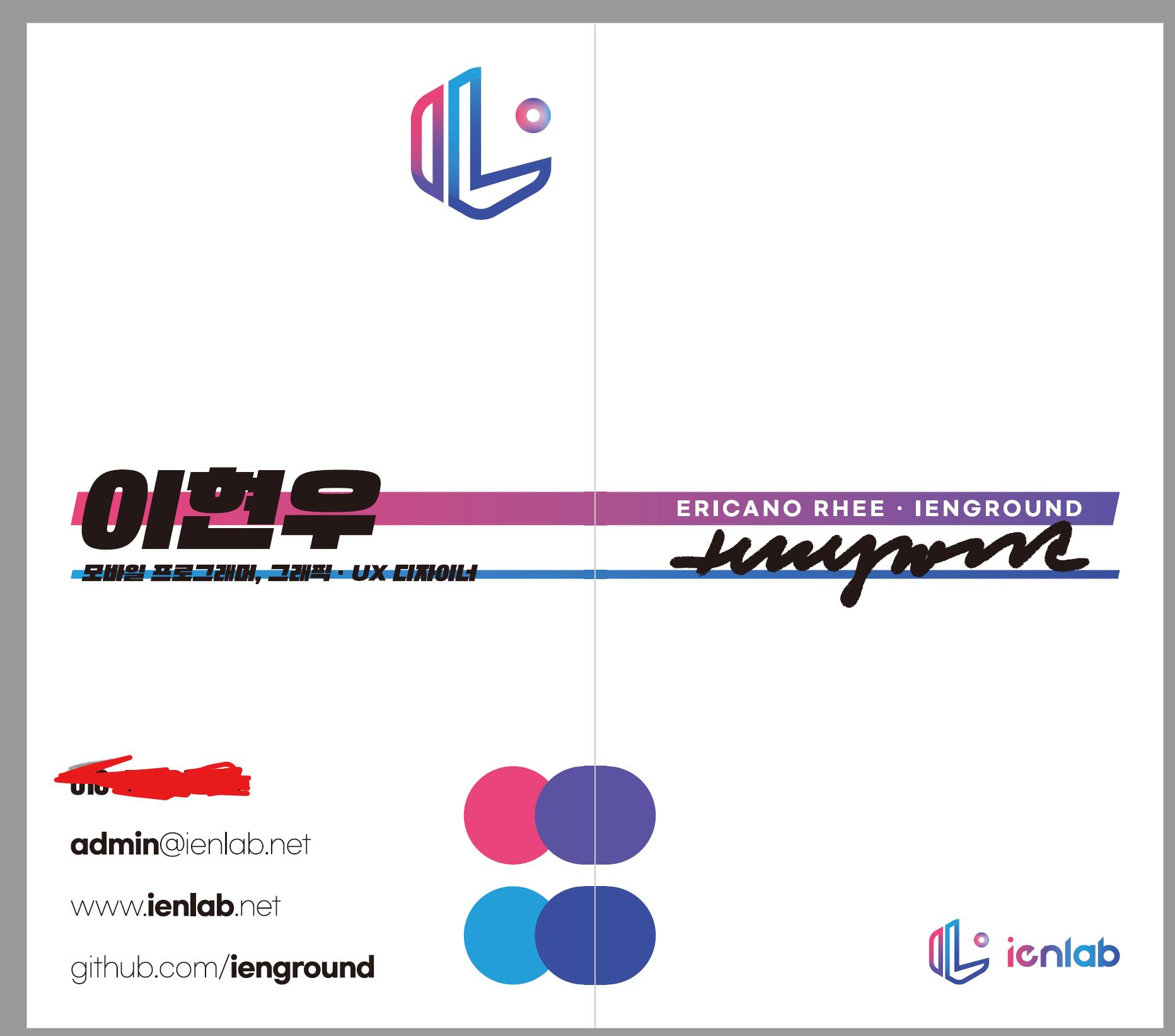 디자인/명함 디자인 210510 아이엔랩 명함 리뉴얼 by 아이엔 / ienground 2021. 5. 10. 싸인은 좀 더 굵게 했으면 좋겠다는 피드백이 있었다. 실제 출력도 해 봤는데 뒤에 색을 조금 더 연하게 해야 할 것 같다. 일단 디자인은 만족! 공유하기 게시글 관리 아이엔랩 블로그 저작자표시 비영리 변경금지 (새창열림)