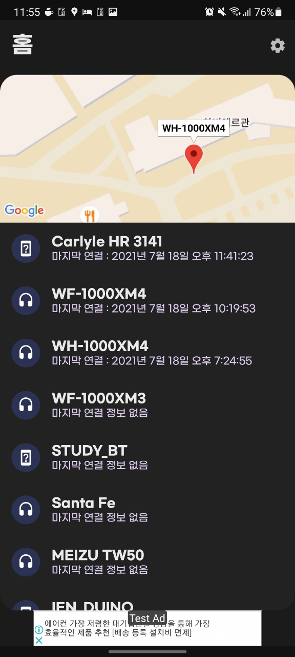 광고를 추가했다. 그리고 홈 화면이 너무 허전한 것 같아서 마지막으로 확인된 위치를 모두 마커로 표시해주기로 했다. 마커 아이콘을 다른 걸로 해야 될 것 같다.