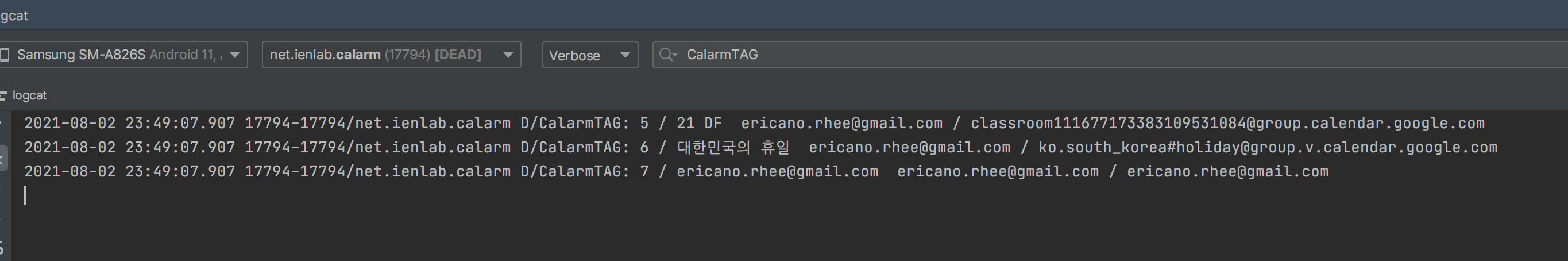 캘린더 프로바이더를 통해 일정을 가져오는 테스트를 하고 있다.