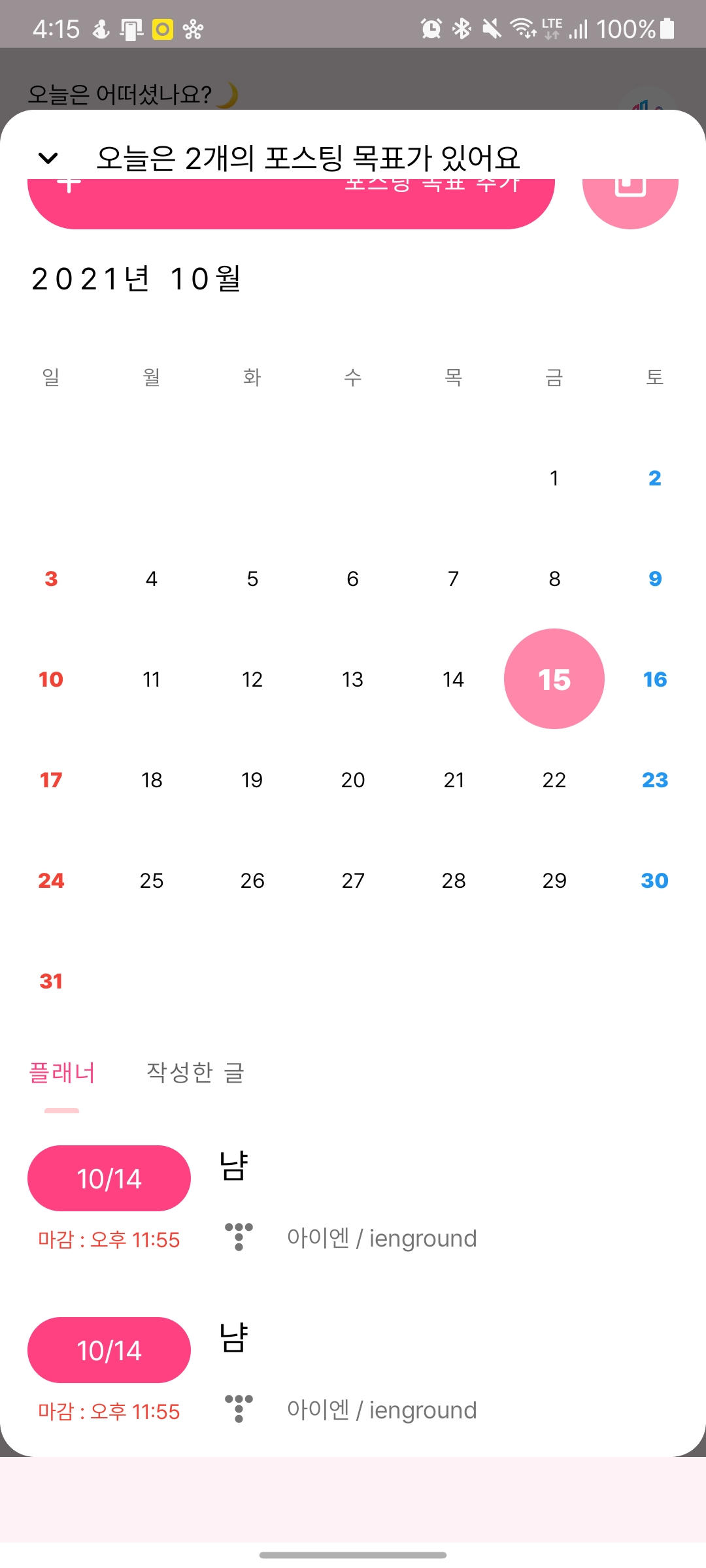 | 211015 블로그 플래너 개발 일지 (0) | 2021.10.15 |