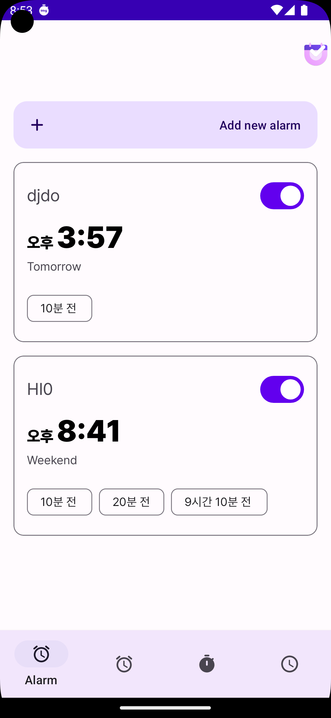 데이터가 정상적으로 잘 넣어비고 수정되고 지워진다. 아직 알람 기능은 안 넣었다. 알람 기능은 다 끝내고 캘람 부분으로 넘어가지 않을까 싶다. 확실히 전 버전보다는 깔끔해진 느낌....