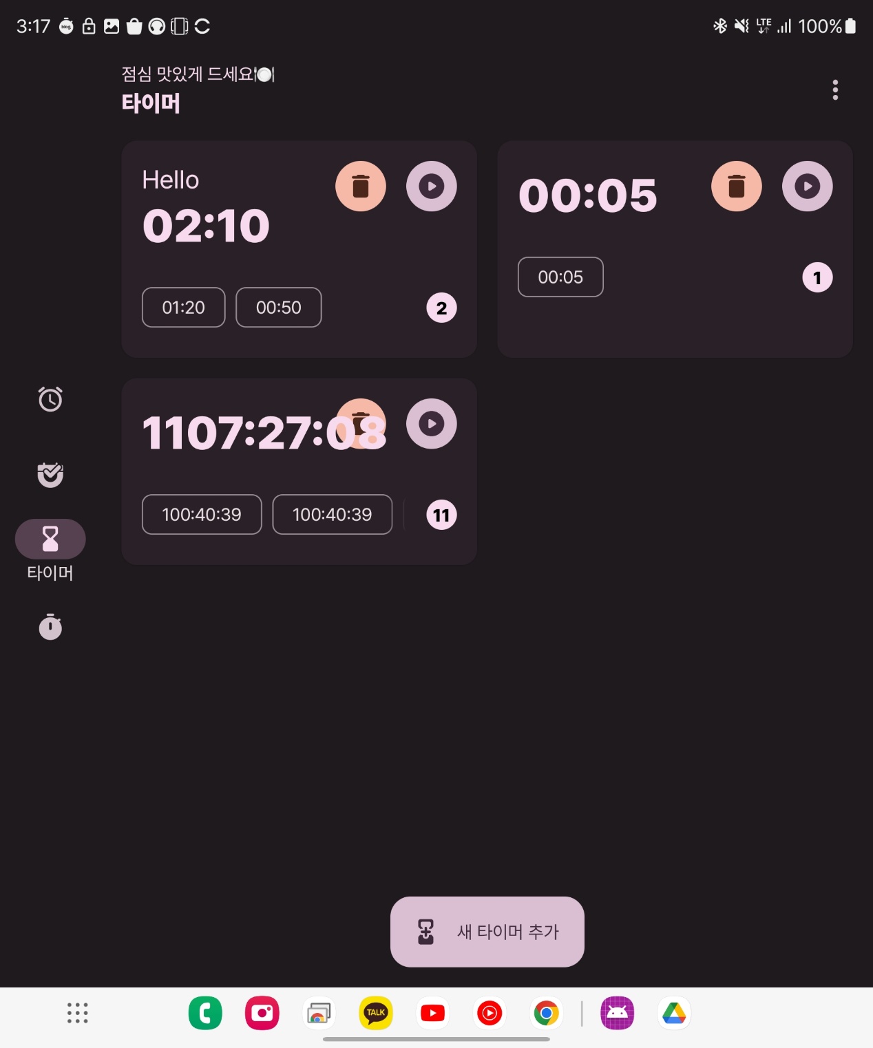 울리는 건 합쳐서. 끄는 것도 통합으로. 시간은 가장 처음으로 종료된 타이머 기준 -00:01