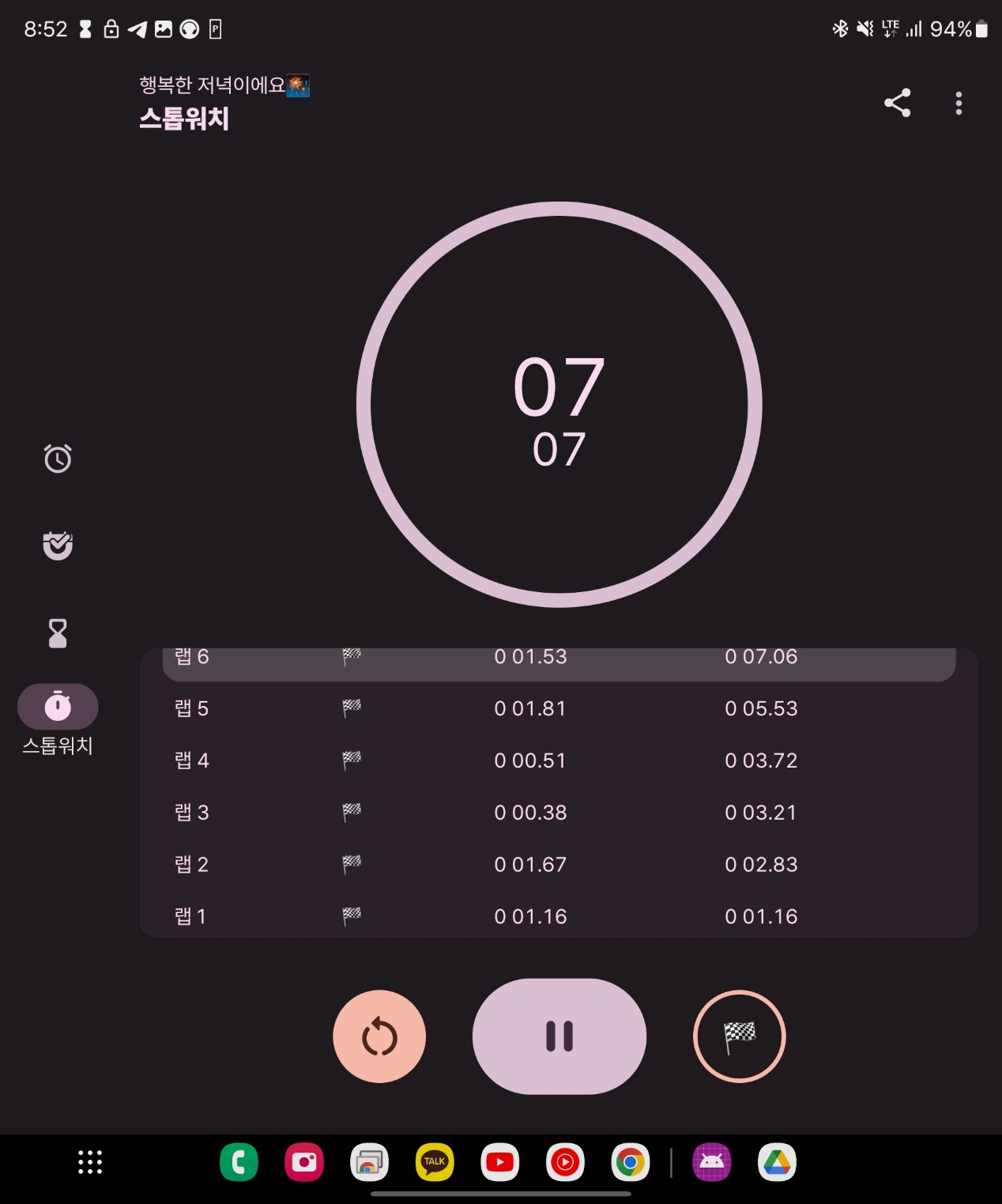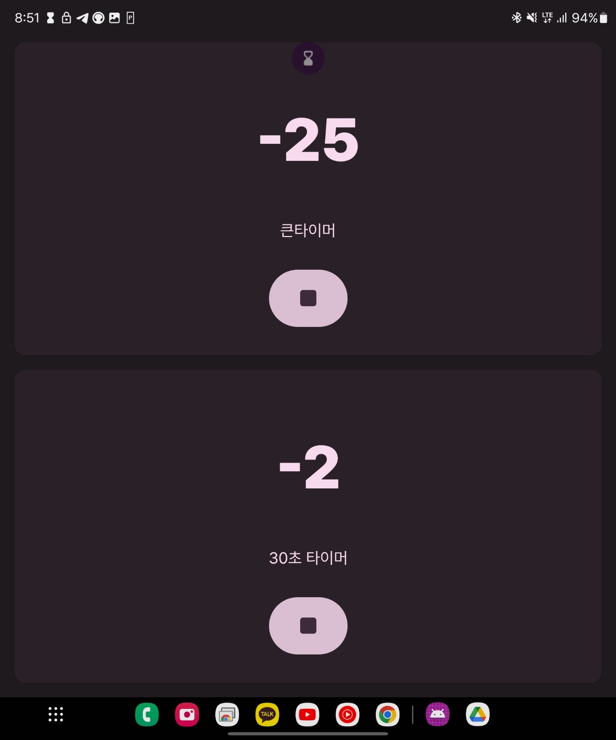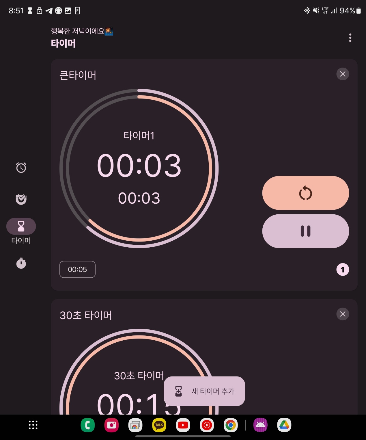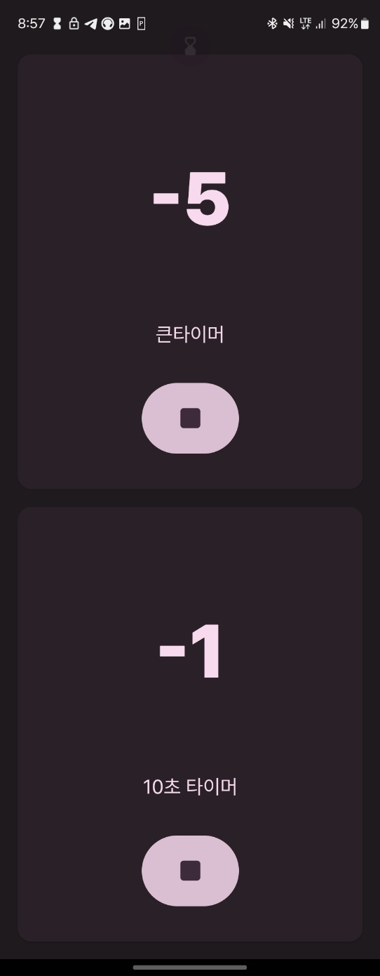 사진은 서브 타이머 완료 노티피케이션, 그리고 개별로 일시정지가 되는 타이머.