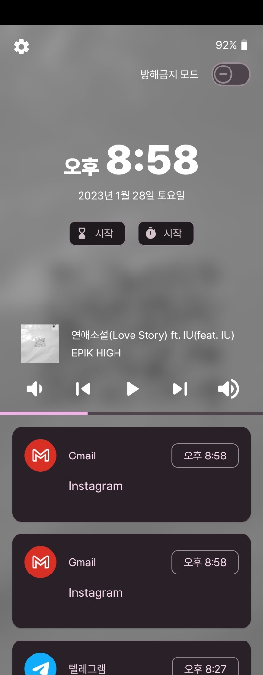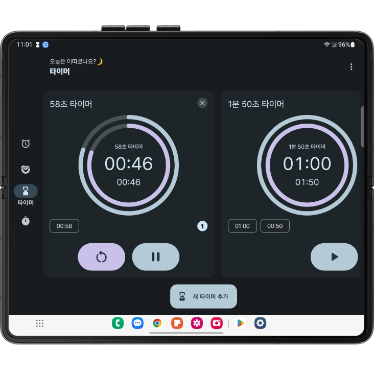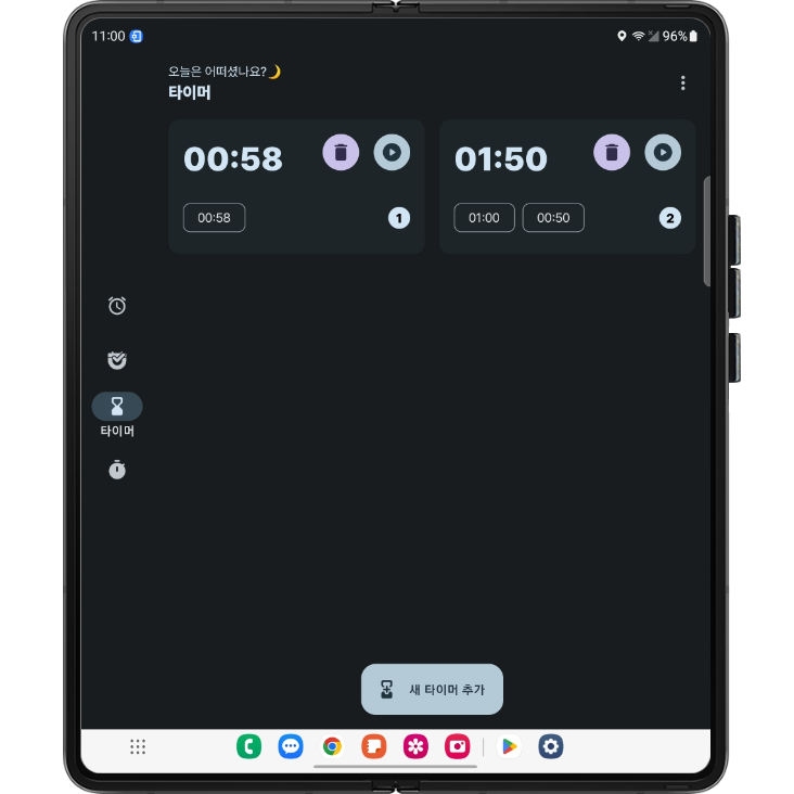 폴드4 스크린샷 중에 위는 이전 버전, 아래는 최신 버전의 타이머이다. 바뀐 것을 확인할 수 있다..