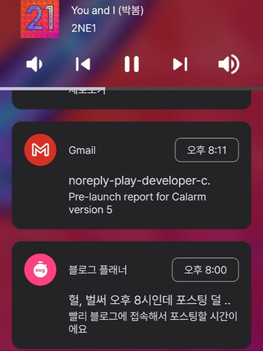 요건 타이머. 노티피케이션에 이제 랩스/재시작이 가능하고 현재 play 상태일 때 랩스 기록, pause 상태일 때 재시작이 가능하게 action을 지정해 두었다. 랩스 개수도 나옴.