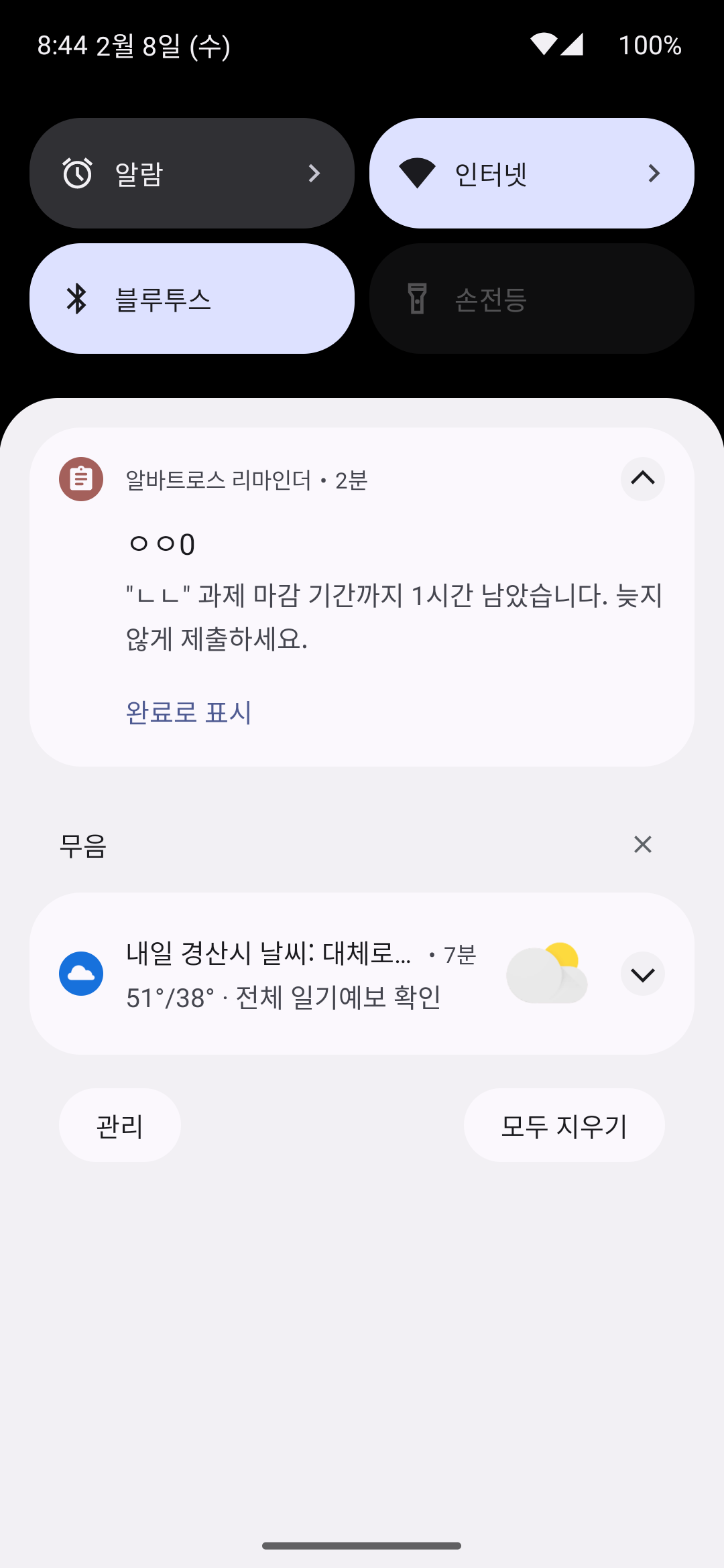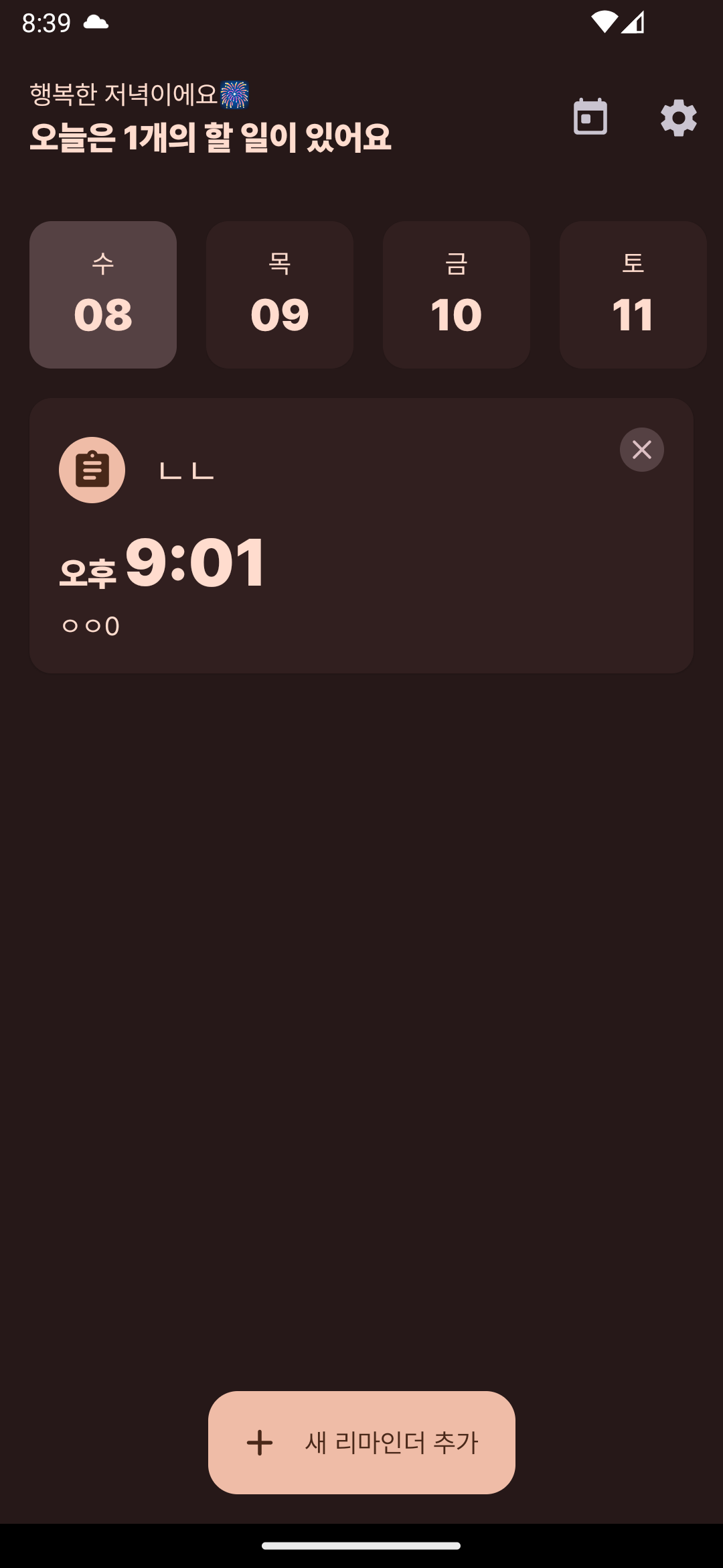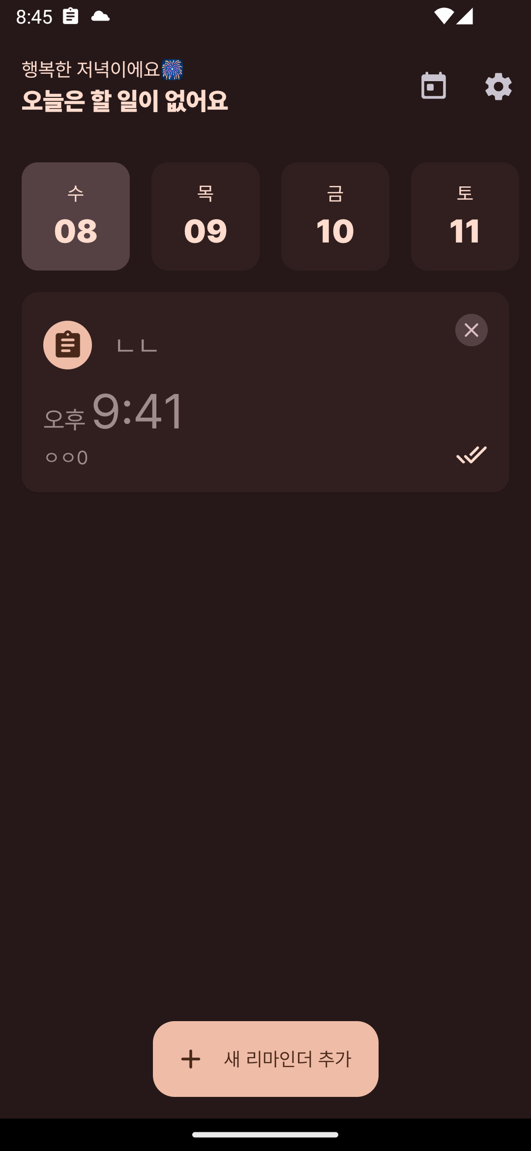 이제 "오늘은 1개의 할 일이 있어요" 따위의 글도 나오게 해 두었다. 약간 내 앱 특징인가 저게? 그런 식으로 된 듯하다. 친절하면 좋지 뭐.. 그리고 노티피케이션에서 mark as finished 해도 메인 화면에서 딱 바뀐다.