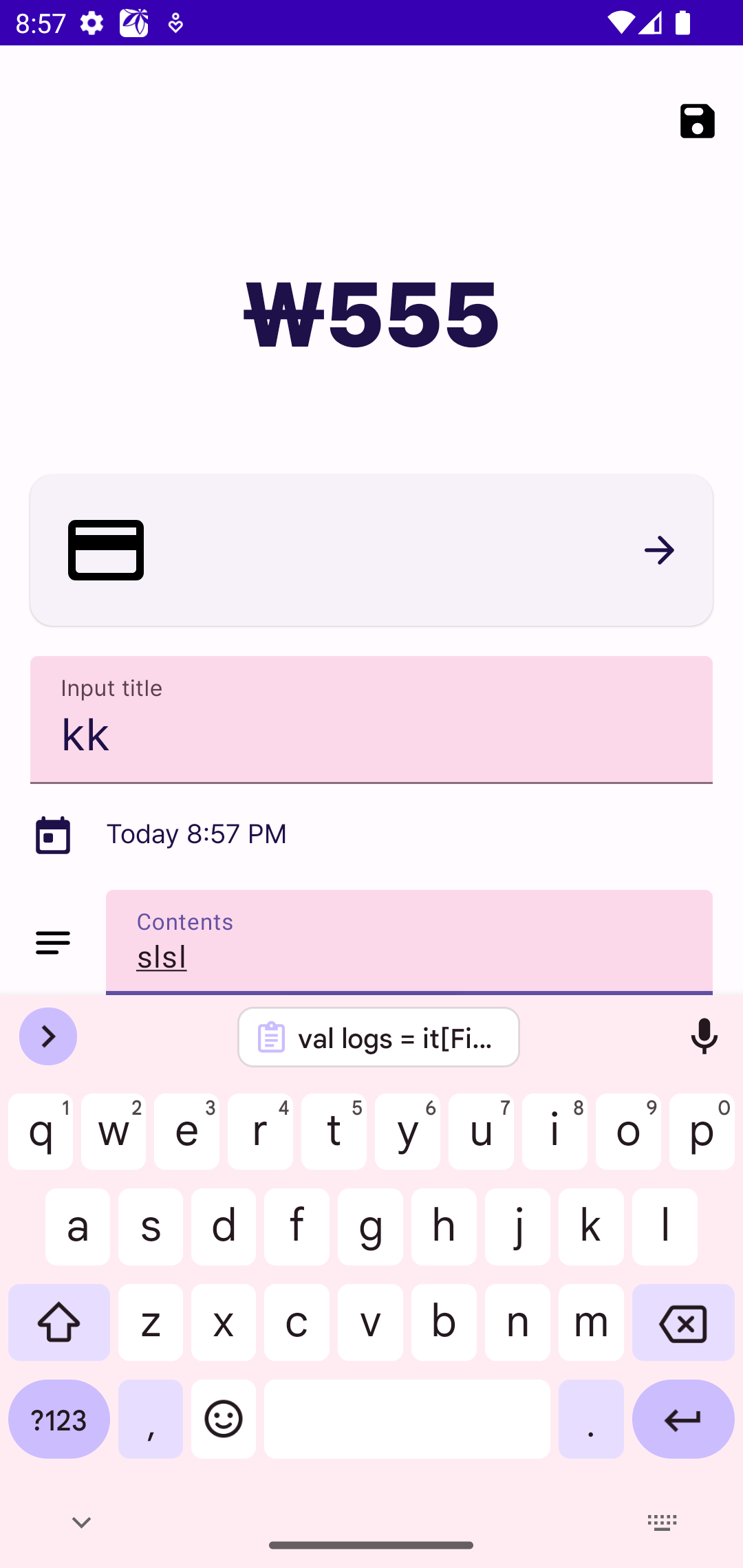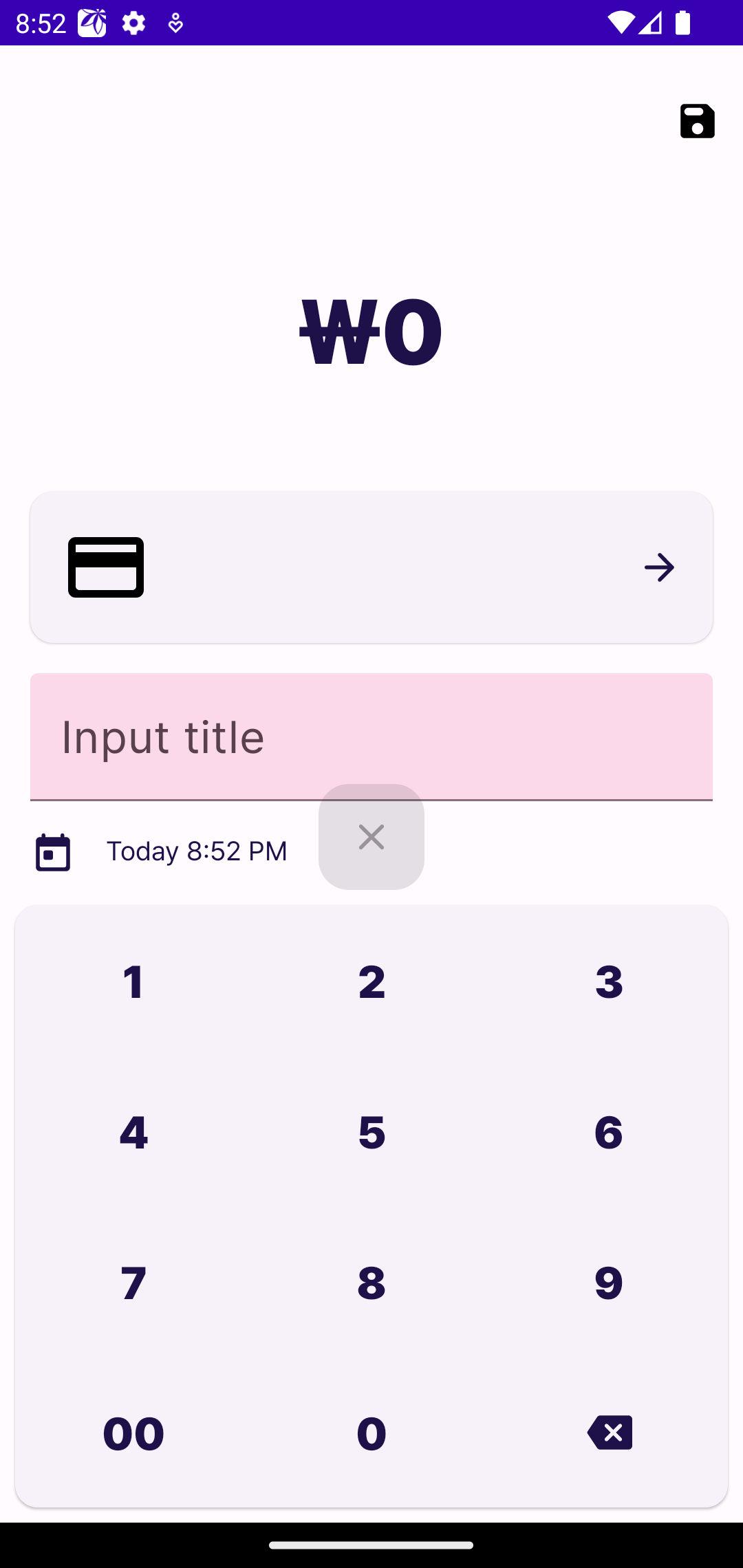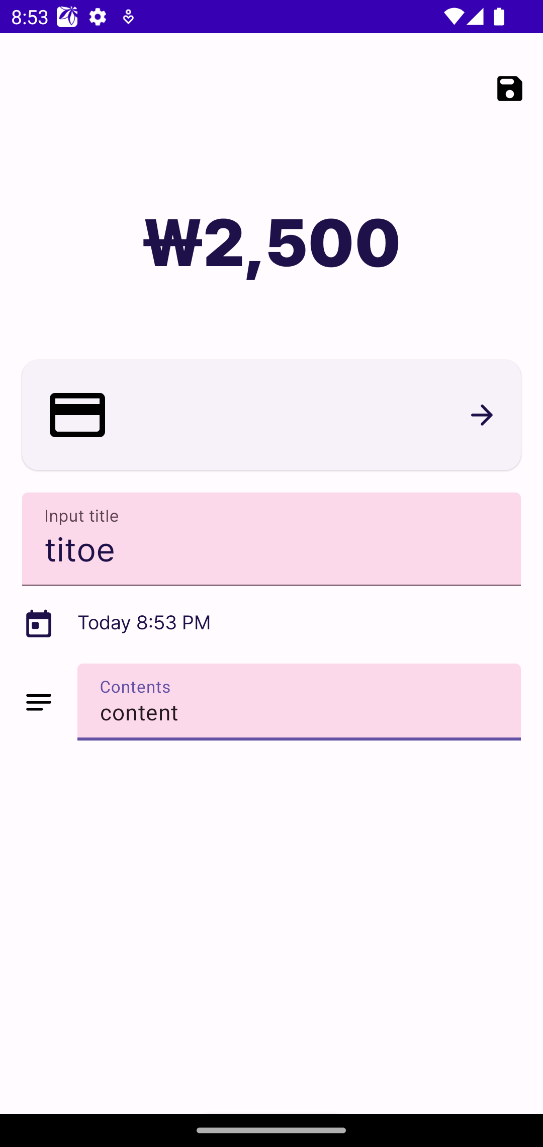 현재는 0원이면 가상 키패드를 못 닫게 하려고 했었는데 그건 없애야 할 것 같다. 저장할 때 막으면 되니까. 대신 EditText에 focus가 주어졌을 때 키패드를 닫지 않으면 찌그러진다. 이건 닫아야겠다. 그래서 금액의 경우에는 직접 만든 키패드를 띄우는 것으로 했고 금액 밑에는 카드를 이 화면에서 교체할 수 있게 하는 카드를 만들어두었는데 아직 구현하지 않았다.