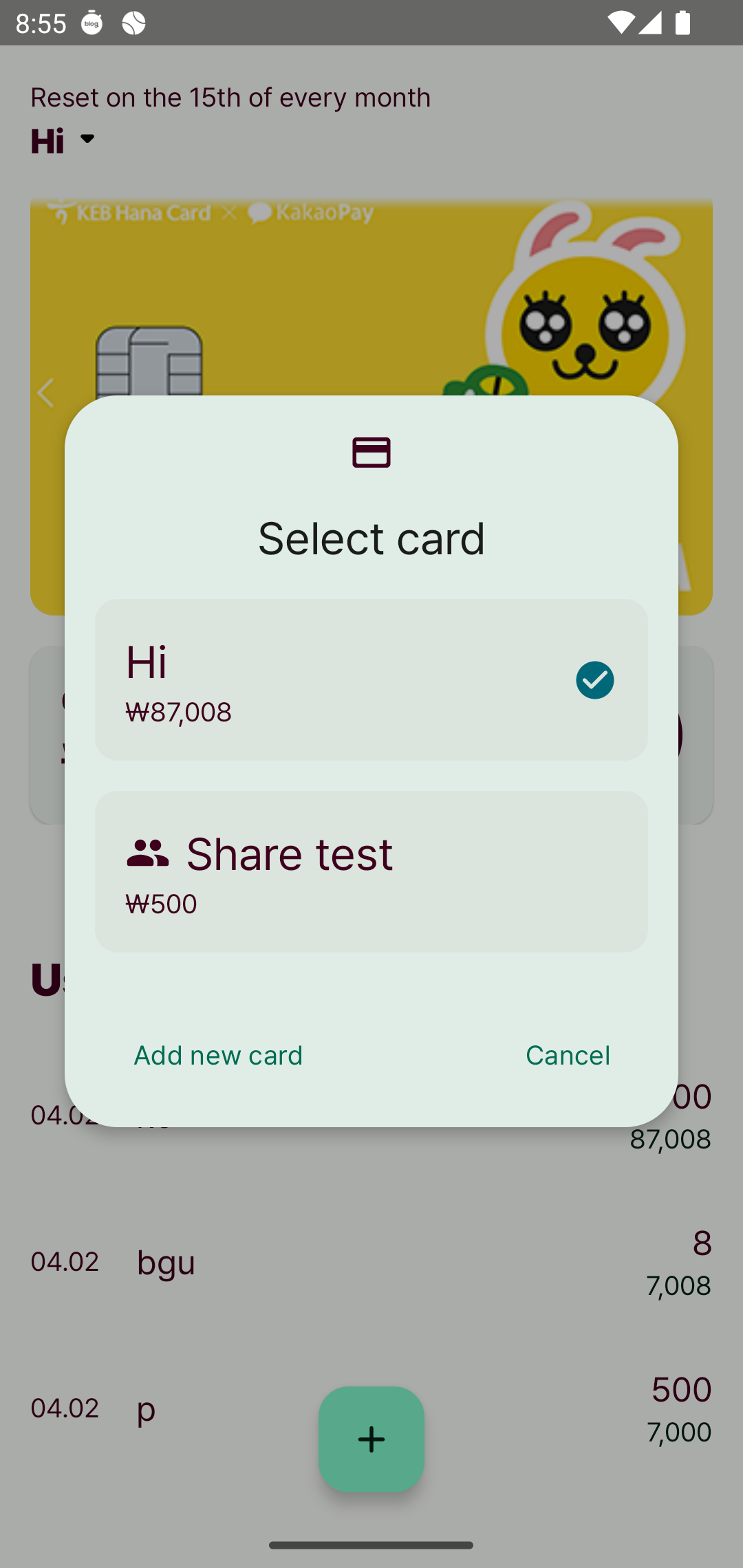 첫번째는 공유받은 유저에게 뜨는 모습, 두번째는 본인의 카드가 뜨는 모습이다.