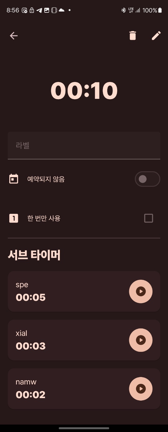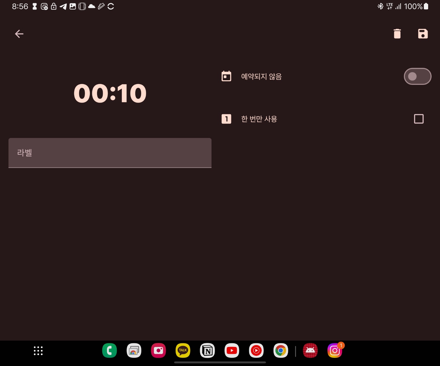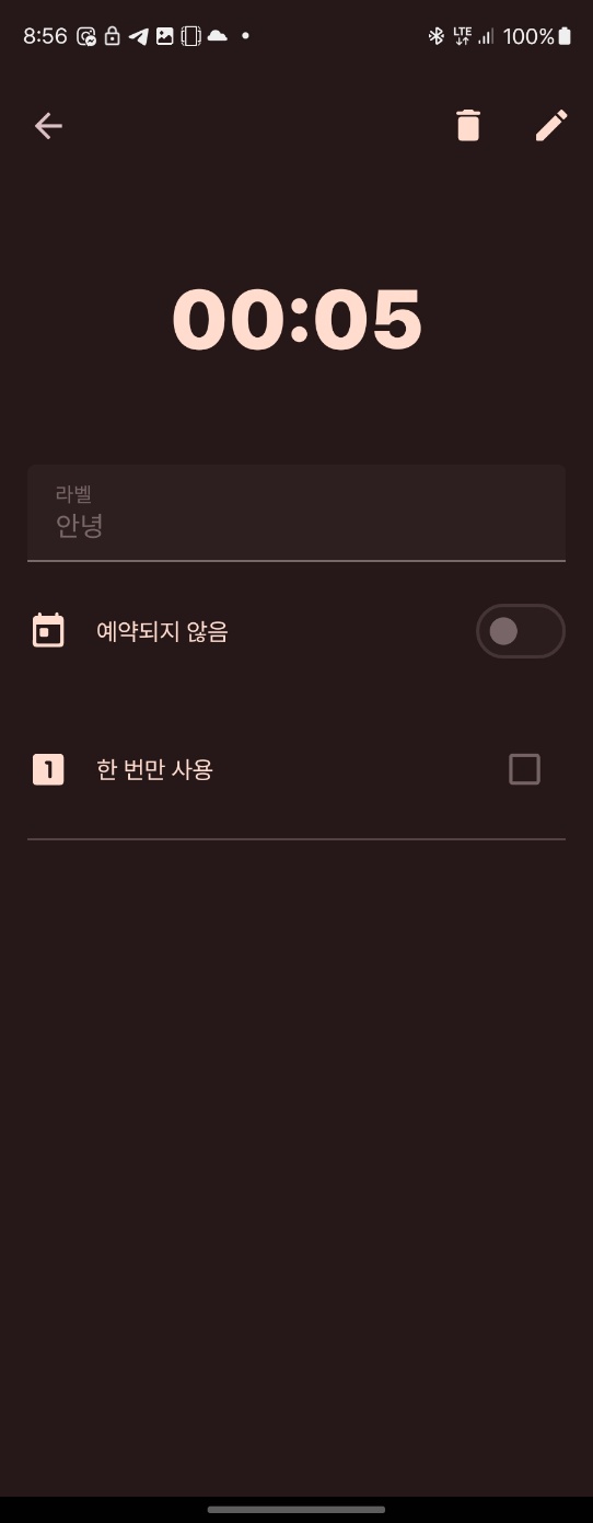 그리고 알람, 타이머에도 한 번만 사용 옵션을 모두 추가했다.