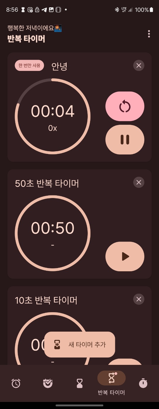 반복 타이머도 이제 잘 된다. 1회용이라면 잘 사라지기도 한다.