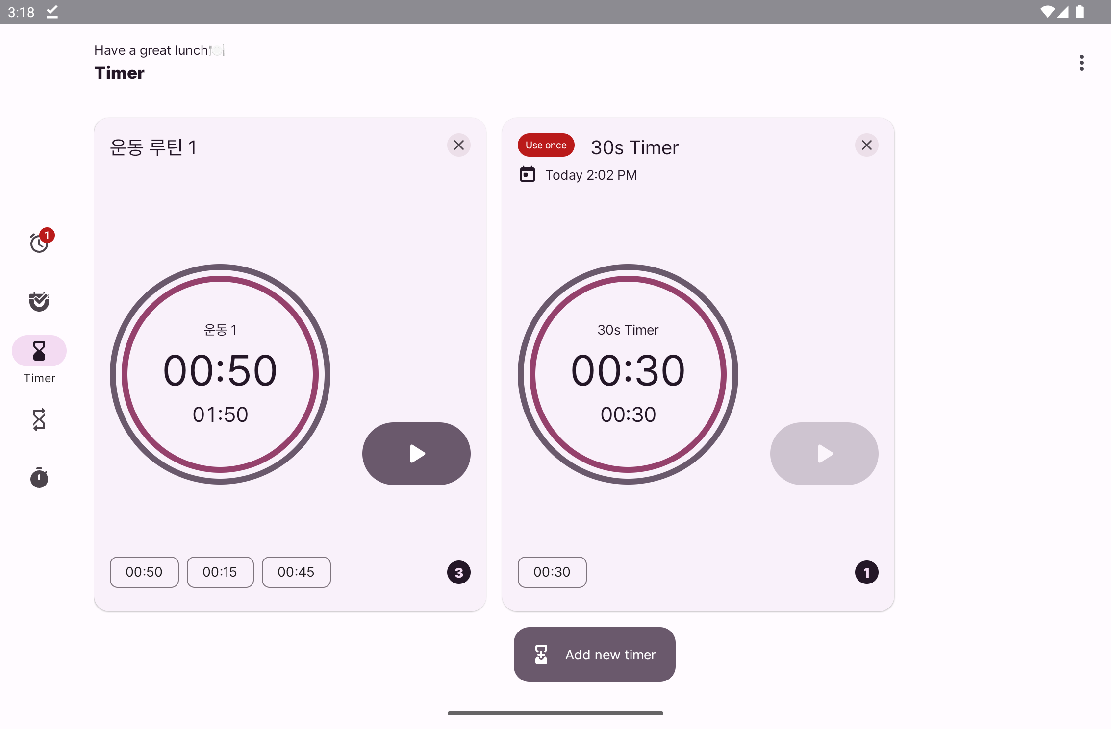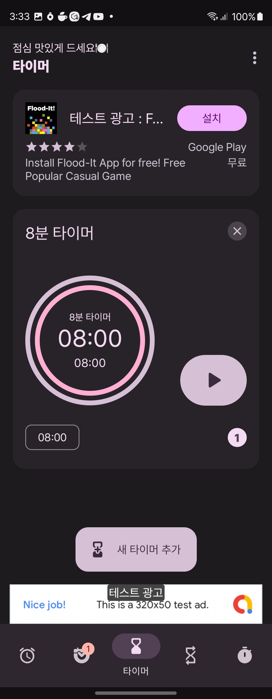 타이머 등등도 원래 태블릿이랑 폰이랑 구성이 좀 달랐는데 뭔가 계속 모양이 찌그러져서 비슷하게 바꾸었다. 그리고 예약 기능도 위치를 위로 옮겼음. visibility를 gone으로 하니까 높이가 달라져서 invisible로 했는데, 그러니까 빈 공간이 허하게 남아서 위로 올렸음.